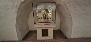 Bevor wir die Treppe hochgingen, hat Tani an der Treppe erstmal eine Kerze für Ihren Bruder angezündet, da dort welche waren. Oben konnte man dann in den Raum schauen, der wohl das Kleid Jesu beherbergte. Ein nach meiner Recherche tatsächlich einmaliges Relikt, was angeblich das Kleid sein soll, was Jesus beim Tot getragen hat und was dann einem Wächter gegeben wurde.