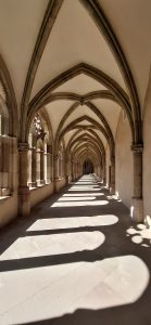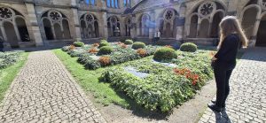. Draußen erinnerte es sehr stark an den Dom in Xanten. Man konnte unterdacht um den Garten laufen und in der Gartenmitte waren Gräber toter Geistliche.