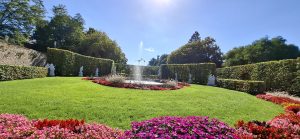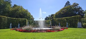 Wir gingen raus, es kleines Minischlossähnlicher Anbau war noch dran sowie ein schöner großer Park mit einem Springbrunnen, um den wir rum gingen. Wir machten wie überall natürlich Fotos. Als wir uns auf einer Bank saßen, sahen wir eine Gruppe chinesicher Touristen zu, wie die alles fotografierten, was da war und überlegten selbst, wohin wir als nächstes wollten. Ich schaute auf aus dem Hotel mitgenommene Karten, die alles sehenswürdigkeiten zeigten. Wir gingen ein
