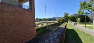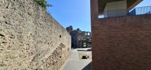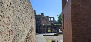 Stück den Park weiter runter die Stadtmauern entlang und kamen dann an der Kaisertherme vorbei. Wir machten von außen Fotos, gingen aber nicht in das Museum. Wir gingen dann die andere Seite des Parks zurück, wo ein Stand war, wo jugendliche auf extra aufgebaute Wände sprühten, es war eine Aktion für Jugendliche, wo die sich sammeln und legal Sachen machen konnten, anstatt irgendwo Blödsinn. Weiter geradeaus kamen wir an die Parktoilette, Tani musste dringend und ging auf diese drauf. Ich wollte auch, aber öffnete gerade mal die Männertoilettentür. Der Geruch, der mir entgegen kam, zwingte mich bereits zur Kapitulation und so wartete ich draußen auf Tani. Als Tani wiederkam berichtete Sie mir von den erwartet schlechten Zuständen der Toilette, auf die ich Sie aber vorab gewarnt habe. Da war wohl eine Frau, die sich wohl die ganze Zeit da in die Toilette übergeben hat. Dann gingen wir zu Fuß weiter.