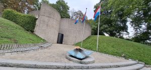 Man verließ den dreckigen Teil der Stadt und gelangte in den schöneren, moderneren Teil. Von da auf waren wir wiederrum schnell über eine Brücke und vorbei an einem Kriegsdenkmal, wo ein echtes Ethanolfeuer scheinbar dauerhaft brennt in der schönen Altstadt, an einer Bücherei, von wo man aus nach unten in den schönen, altstädtischen Teil reinschauen konnte. Dort, an dem Brunnen, an dem wir standen, stand auch das bekannte Gebäude, mit den großen, bunten Vasen drum herum.