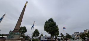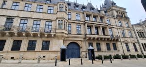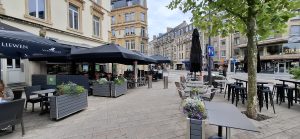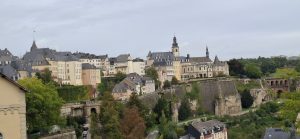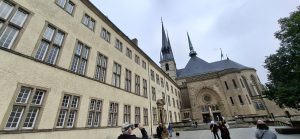 Eigentlich wollten wir weiter den Randweg durch die alten Maueranlagen gehen, kamen aber ein wenig vom Pfad ab und über den Marktplatz dann ehe in etwas modernere Teile der Stadt. Auf einem weiterem kleinen Marktplatz über die Straße, auf dem gerade auch ein Markt war, stand eine Statue sowie eine sehr große Luxemburgianische Flagge. Wir gingen da einmal rum und dann zurück zur anderen Straßenseite, an dem eine große Kirche stand, die wir besichtigten.