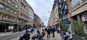 Wir gingen rein und schauten uns da alles ein wenig an. Von dort gingen wir dann weiter unseren Wegdurch Luxemburg. Wir gingen teilweise ein wenig Planlos durch die Straßen, hatten aber auch genug zu sehen. Irgendwann gingen wir auf einer Brücke für Fußgänger und Fahrradfahrer, die unter einer Brücke hing, bei der mir ein wenig Mulmig wurde. Als wir wieder in der Stadt auskamen, gingen wir da ein wenig durch. Zwischendurch gab es doch recht viele sehr hochpreisige Uhrengeschäfte und ähnliches. An einer Straße in der Stadt standen dann eine menge Leute an der Straße einfach so, ohne diese zu überquären und Aufpasser, die versuchten, alles im Blick zu behalten. Irgendwann verboten die Aufpasser dann, die Straße zu überquären und einige Motorräder, Autos und Poilzeimotorräder fuhren langsam durch für die Vorbereitung des Starts der Tour de Luxemburg. Ein Polizeimotorrad stand da und ein Fußgänger versuchte über die Straße zu gehen und wurde ganz schell vom Polizisten zurückgepfiffen.