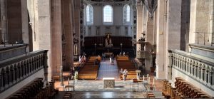 zuerst kamen wir zum Trier Dom, in den wir reingingen und auch einige Zeit verbrachten. Dieser Dom war groß und man konnte sehr viel sehen. Wir waren schon eine längere Zeit da. Neben dem Hauptsaal konnte man noch nach unten in den Keller, in dem man nebem Ritualräume noch einen Schrein aus Gold mit wohl eines der zehntausend Fingern Jesus sah. Eine Treppe hoch ging es dann erstmal über dem Ort, wo der Geistliche der Kirche redet.