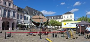 Wir hielten uns, wie bereits gesagt sehr lange in dem Trier Dom auf, gingen dann aber auch endlich mal wieder raus. Draußen war ein kleiner Platz, wo gerade auch für das Stadtfest war aufgebaut wurde, eine große Kugel und lichter, für irgendein künstlerisches Theater. Wir gingen weiter an einem Esel vorbei, wo tani von weitem schon sagte, dass ich mich drauf setzen soll, aber der Esel hatte lustigerweise ein Schild um den Hals mit der Aufschrift „Bitte nicht auf den Esel setzen“. Wir kamen von dort wieder auf dem Marktplatz in Trier aus.