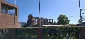 Stück den Park weiter runter die Stadtmauern entlang und kamen dann an der Kaisertherme vorbei. Wir machten von außen Fotos, gingen aber nicht in das Museum. Wir gingen dann die andere Seite des Parks zurück, wo ein Stand war, wo jugendliche auf extra aufgebaute Wände sprühten, es war eine Aktion für Jugendliche, wo die sich sammeln und legal Sachen machen konnten, anstatt irgendwo Blödsinn. Weiter geradeaus kamen wir an die Parktoilette, Tani musste dringend und ging auf diese drauf. Ich wollte auch, aber öffnete gerade mal die Männertoilettentür. Der Geruch, der mir entgegen kam, zwingte mich bereits zur Kapitulation und so wartete ich draußen auf Tani. Als Tani wiederkam berichtete Sie mir von den erwartet schlechten Zuständen der Toilette, auf die ich Sie aber vorab gewarnt habe. Da war wohl eine Frau, die sich wohl die ganze Zeit da in die Toilette übergeben hat. Dann gingen wir zu Fuß weiter.
