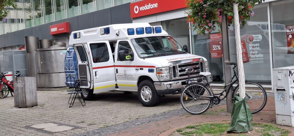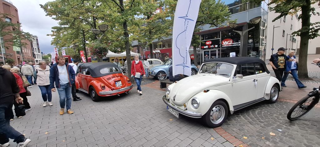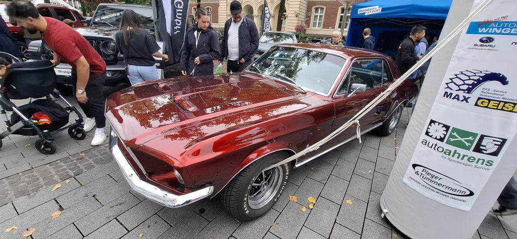 Am Sonntag, dem 21. September 2025, war Lack und Chrome in der Duisburger Innenstadt. Wir fuhren also los, der Verkehr war so weit in Ordnung, es gab keine Staus und wir haben auch im üblichem Parkhaus unter dem Einkaufszentrum „Duisburger Forum“ relativ schnell einen guten Parkplatz gefunden. Dieses Jahr war alles in allen leider etwas weniger aufgebaut als sonst. Derselbe Weinstand, wie letztes Jahr, an dem Tani zwar letztes Jahr einen Wein trank, dieses Jahr allerdings nicht.