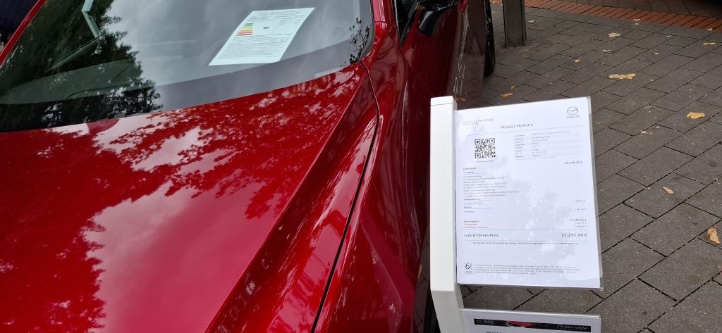 Wir schauten uns bei einem Mazda Stand um, der zwar eine E Mazda 6, aber leider keinen normalen Benziner da stehen hatte. Dafür hatten die einen 2,5L Mazda 3 da stehen, der mir zwar etwas klein ist, aber schon interessant von der Motorisierung. Tatsächlich konnte man sich nicht in die Fahrzeuge bei Mazda hineinsetzen, da die diesmal alle abgeschlossen waren.