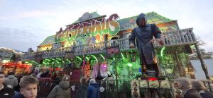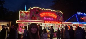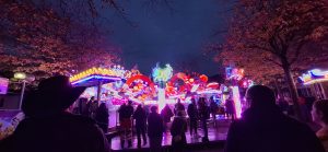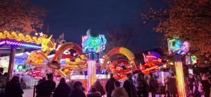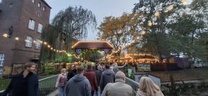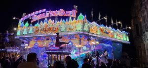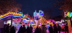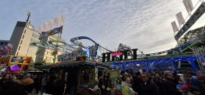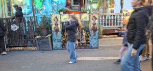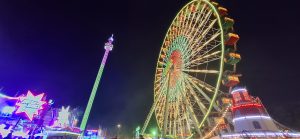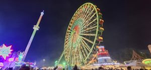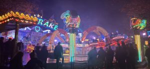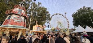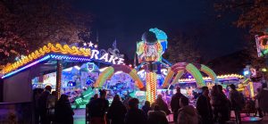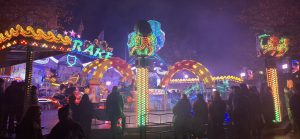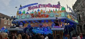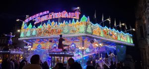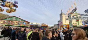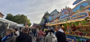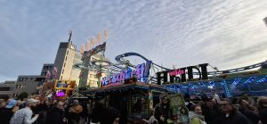 Am Sonntag, dem 19. Oktober 2025 ging es wie letztes Jahr schon zur Kirmes in Bocholt. Eigentlich wollten wir am Samstag schon hin, nur waren wir da eine Runde im Wald spazieren, sowie bei IKEA um zwei Flaschen-Ständer für unsere Abstellkammer zu holen. Da wir danach noch einkaufen waren, blieb nicht mehr genug Zeit, da alleine die Hinfahrt schon 45 Minuten dauert. Daher fuhren wir dann Sonntag, auch ein wenig später als geplant gegen 15-16 Uhr los. Ca. 45 Minuten später kamen wir am angepeiltem Aldi an. Diesmal waren die Straßenseitenparkplätze alle voll und ich fuhr (in die eigentliche Ausfahrt) auf den Aldi-Parkplatz, um mal zu schauen. Da aber Nummernschilder dort für die Dauer des Parkens gespeichert werden (ich hoffe, meine verkehrt herum drauffahrt, hat keine Konsequenzen), entschieden wir uns, erstmal noch ein wenig herumzufahren. Direkt ein paar Meter weiter fanden wir an einem Autohaus am Straßenrand dann einen guten Parkplatz. Von da ging es dann zu Fuß auf zum Einkaufszentrum, wo erstmal nichts los war. Wir gingen durch die Stadt bis um Marktplatz, auf dem das Rathaus steht, wo die Kirmes quasi began und das erste Fahrgeschäft steht. Wir gingen durch, an dem ehemaligem Konditor Voss vorbei und weiter runter an der Kneipenmeile und dem Waffenhändler vorbei eine große Runde bis zum Parkplatz des Einkaufscenters, wo ein Großteil er Kirmes aufgebaut war. Wir gingen zwischendurch eine Seitenstraße zu einem kleinem in sich geschlossenem Teil der Kirmes, an dessen Stelle ich letztes Jahr von meinem Chef Vitaly angerufen wurde, da der Webserver von meiner Firma Probleme machte. Dort war sowohl ein Flammlachs-Stand, der für 10 € Flammlachs in Brötchen anbot (neuer Rekordhochpreis) oder ein Currywurststand. Ich wollte aber erstmal ein wenig weiter schauen, was es sonst noch so gab. Tani wurde ein wenig unbehaglich, sie entwickelte allmählich richtigen Hunger. Auf der Kirmes gab es im Grunde die gleichen Fahrgeschäfte und Stände wie auf jeder Kirmes, bzw. wie letztes Jahr auf derselben. Hinten gab es wieder eine Partymeile, mit mehreren Partyzelten. Nachdem wir ein wenig weiter herumgegangen sind, gingen wir dann doch zum Flammlachs-Stand und Tani und ich holten uns jeweils eines im Brötchen. Nach dem Essen gingen wir weiter rum. Tani wollte dann doch kein Bierchen oder sonstiges mehr und dies lieber daheim gemütlich genießen. Als wir so ziemlich überall einmal durch waren, wollte Tani neben dem ehemaligem Konditor Voss doch ein Bierchen an einem ruhigen Stand mit vielen freien Bierbänken. Wir saßen da und Tani trank ihr Bier, als es hinter uns knallte. Eine ältere Frau ist von der Stufe des Bierstandes herunter gestolpert, mit dem Kopf auf die Kante der Bierbank hinter uns. Die Gäste, die auf ebenjener Bank saßen, halfen sofort, sowie andere. Auch wir standen auf, bereit zu helfen, aufgrund der doch ausreichende Anzahl an Personen da, hielten wir uns aber zurück. Danach gingen wir noch ein wenig über die Kirmes, da wir ein wenig umherirrten, um den Weg zu finden. Tani war aufgrund der Kirmes sehr desorientiert, ich konnte das alles relativ gut zusammen bekommen, nur den Ausgangspunkt zum Auto hatte ich eine Zeit aus den Augen verloren. Da wo der große Fahrradladen ist, gab es nun eine Metzgerei, keine Ahnung genau, irgendwas Türkisches oder ähnliches, die ganze wohl Kälber ausgeschlachtet dort hängen hatten. Ob das soweit erlaubt ist, hatten wir uns da dann auch gefragt. Schlussendlich gingen wir dann zum Auto zurück und fuhren heim, um den Abend daheim noch ausklingen zu lassen. Ich hatte zum ersten Mal auf einer Kirmes mein neues Handy Samsung Galaxy A55 5G dabei und konnte da mal schöne Aufnahmen auch mit Weitwinkel machen.