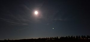 Der Mond war groß und wirklich stark am Leuchten. Dazu hatten wir das Glück einer sternklaren Nacht gehabt. Wir machten Fotos, tranken die Klopfer und waren dann auch recht schnell wieder daheim, wo wir Ofenkartoffel mit Lachsfischstäbchen gegessen hatten. Ich war noch kurz auf dem Balkon und machte ein paar Fotos mit der Spiegelreflexkamera. Dabei holte ich auch endlich mal die Akkuschutztaschen rein, die ich bei Amazon bestellt hatte und, da die stark chemisch rochen, raus auf den Balkon getan hatte. Die waren jetzt mindestens einen Monat dort und riechen nun kaum mehr.