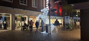 Am Sonntag, dem 02. November 2025, war in Bocholt Lichtersonntag. Meine Eltern waren bereits zwei Tage zuvor am Freitag in Bocholt, wo sie mir Fotos von verschiedensten leuchtende Weihnachtsskulpturen schickten, die in der Stadt herumstanden. Zuzüglich zu dem Lichtersonntag war auch verkaufsoffener Sonntag. Wir fuhren zu unserer üblichen Parkplatzgegend und fanden einen da, wo wir das letzte Mal bei der Bocholter Kirmes 2025 parkten.