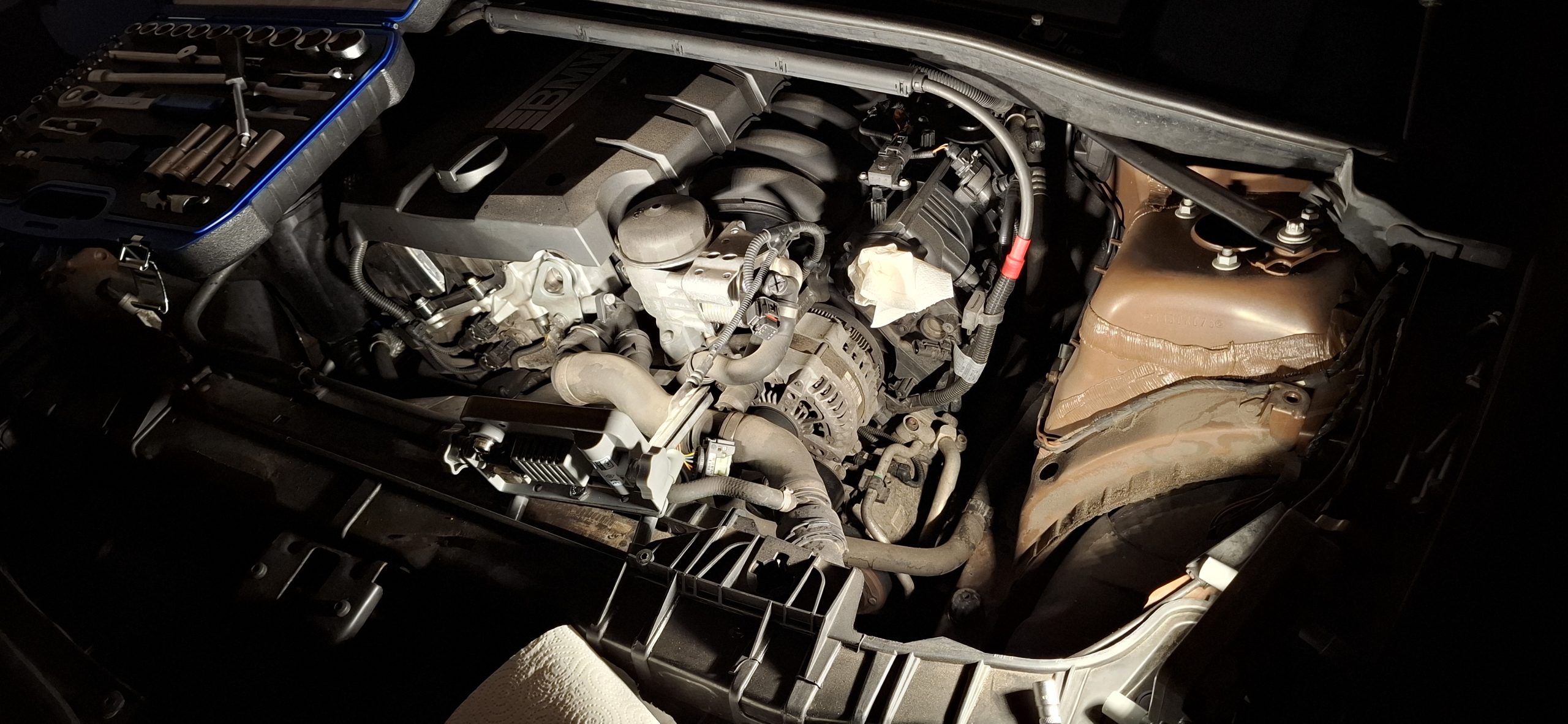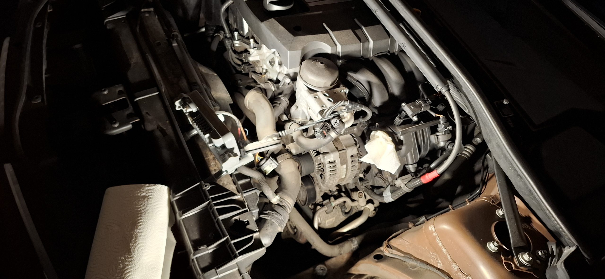 Die Idee hatte ich vom Sönke, der aus der Schweiz zu Besuch in Deutschland am Tag zuvor im Verein zu Besuch war. Ein Problem, mit einem ruckelnden Motor aufgrund einer verschmandeten Drosselklappe, hatte er wohl an dem Skoda seiner Freundin mal gehabt. Ich ging also mit genug Werkzeug bewaffnet in die Garage, schob das Auto einen halben Meter nach hinten, um vorne gut an den Motor zu kommen und fing an, die Plastikabdeckung sowie den Lufteinzug und den Schlauch zu demontieren.