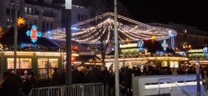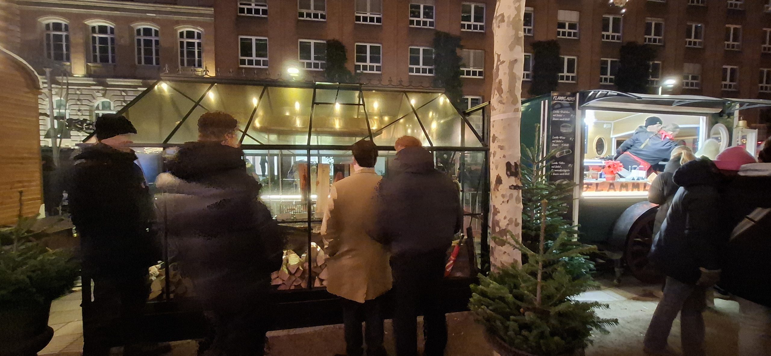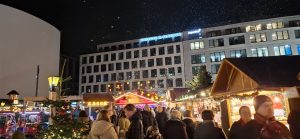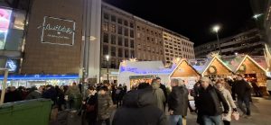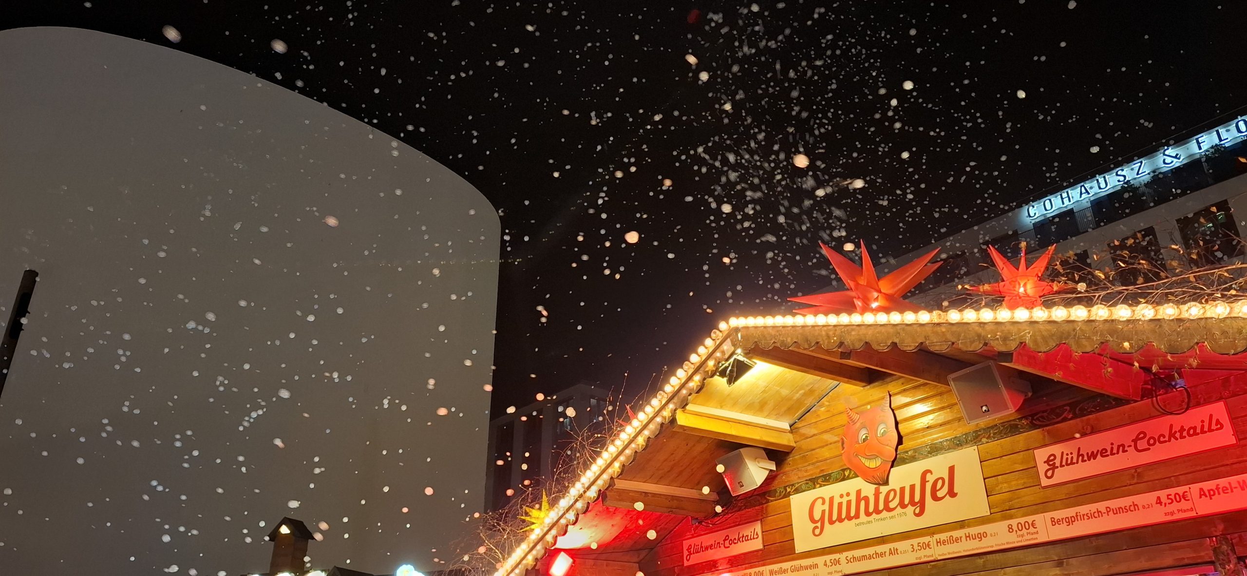 Dann bekam Tani endlich Ihre Käsespätzle, da wir zwei Holzgabeln bekamen, pickte ich auch ein wenig mit. Nach dem Essen ging es erstmal in klarer Linie zum Glühweinstand. Mit Grundlage im Magen gönnte sich Tani mal wieder eine „Heiße Heidi“ an Ihren Stammstand in Düsseldorf, nahe Peek & Cloppenburg. Danach gingen wir eine Runde um den Weihnachtsmarkt.