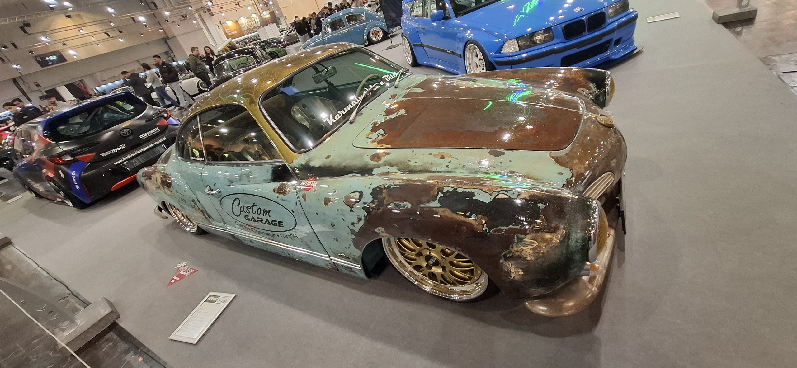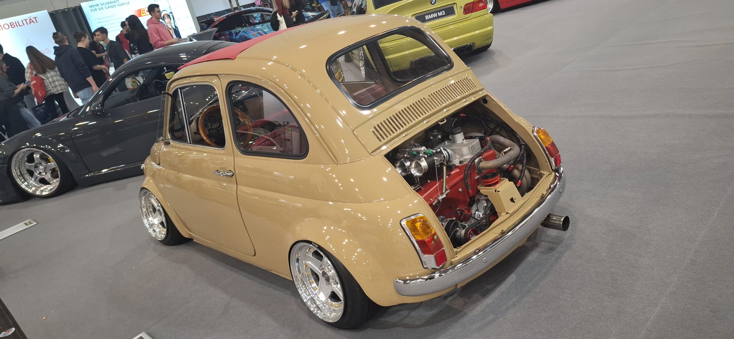 Am Sonntag, dem 07. Dezember 2025, waren wir auf der Motorshow in Essen. Es war der letzte Tag der Messe. Die Tickets habe ich wie immer am Freitag schon gekauft und auch ausgedruckt gehabt. Da mein BMW noch in der Werkstatt war, fuhren wir mit den Mercedes A-Klasse (A150) meines Großvaters dorthin. An diesem Tag hatte übrigens auch Biene-Maja-Bärchi seinen ersten Geburtstag. Wir fuhren nach einem Toast gegen acht Uhr los. Wir folgten das Google-Navi, was uns in Essen zuerst über einen Schleichweg in eine Sackgasse lotste, wo die laut Navi zu befahrende Straße mit einer Schranke gesperrt war, kurz nach dem Kommentar von Tani noch, dass das Navi schon wisse, dass wir richtig fahren, da ich in einer Fahrradstraße kurz irritiert war, ob man mit dem Auto da durch darf. Wir fuhren den Weg also zurück und dann die altbekannte Strecke. Wir waren natürlich mal wieder viel zu spät dran und einen Parkplatz direkt an der Halle gab es nicht mehr, da war schon alles abgesperrt. Wir fuhren also über die Autoahn zum Parkplatz P10, auf dem wir letztes Jahr schon waren, wo man dann via Shuttlebus zur Messe kam. Dort gab es noch mehr als genug Parkplätze und schlussendlich hatten wir zur keiner Zeit wirklich Stau oder langes Stehen. An sich ist das mit dem Shuttlebus auch gar nicht so schlimm, sowohl auf dem Hin, als auch auf dem Rückweg bekamen wir ganz vorne Sitzplätze und es fahren ununterbrochen Busse hin und her. Der Vorteil ist, was ich erst am Abend feststellte sogar, dass der Parkplatz P10 „nur“ 10 € kostete, während an der Messe die Parkpreise bei 18 € lagen. Nach einer kurzen Busfahrt, waren wir relativ schnell, aber nach der Öffnung, die um 9 Uhr war an der Halle angekommen. Diesmal stiegen wir am Haupteingang aus. Der Vorteil, nach 9 Uhr da zu sein war zumindest der, dass es keine Schlange mehr in der Vorhalle gab und man sofort in die Messe ohne Warten hereinkam. Drinnen angekommen gingen wir zuerst relativ zügig durch die ersten Hallen, unser Ziel war es, eines der Modellautos zu bekommen, die man irgendwo kaufen konnte, die jedes Jahr als Maskottchen der Messe verkauft werden. Ich meinte, der Stand war irgendwo in der Nähe vom Nürburgring-Stand, tatsächlich war er sogar genau daneben. Dort in der Ecke war auch der eBay-Stand, bei dem es diesmal aber keine Energiedrinks um sonst gab. Natürlich schlichen wir auch ein wenig durch den Nürburgring-Stand. Wir fanden auch wieder einen O´Donnell-Stand, an dem wir die neuen Liköre probierten. Tani interessierte sich am meisten für den Erdbeer-Likör. Aufgrund des Gewichtes und da es noch früh war, wollten wir diesen aber nicht direkt mitnehmen. Wir versprachen, gegen Ende der Messe wiederzukommen und der Standbetreiber legte uns eines zur Seite, da die nur noch fünf Stück da hatten. Wir hangelten uns weiter durch die Hallen und schauten uns alles an. Im Wesentlichen war es wie letztes Jahr, ein paar andere Autos, ein paar andere Stände, aber zu 90 % das Gleiche. In der Drift-Halle gab es diesmal wieder ein wenig mehr Show. So gab es z.B. mehrere Stuntvorführungen, wovon wir zwei gesehen haben. Bei der ersten Stunt-Show standen wir unten zwischen den Zuschauern, leider ein paar Reihen hinten und konnten dementsprechend nicht wirklich was sehen, nur über das hochgehaltene Handydisplay sah man ein wenig was. Es gab auch eine Standtribüne für Behinderte, auf der erstaunlich viele Unbehinderte standen, an der aber ein Aufpasser war. Da der Aufpasser Türke war und die dort stehenden größtenteils auch, war wohl klar, warum die drauf durften. Später um ca. 15 Uhr bei der zweiten Stuntshow hatte wir auf der Tribüne Sitzplätze, auf denen wir schon eine längere Zeit zuvor Platz nahmen und uns ausruhten. Als hinter uns welche gegangen sind, sind wir auch noch einen Platz nach oben gerückt. Während der Stunt-Show stellten wir uns hin, konnten da dann aber perfekt alles sehen. Die Stunt-Show bestand aus ein paar Motorradsprüngen, gefolgt von einem Quad, was ein runden Überrollkäfig hatte und sich ständig überschlug. Dann kamen drei BMWs, die auf zwei Räder fuhren und ein wenig drifteten, sowie eine Person, die erstmal auf dem seitlich fahrendem Fahrzeug stand, danach sich auf das Dach legte und seitlich festhielt. Danach kam ein Quad, was ein wenig auf den Hinterrädern fuhr und driftete und schlussendlich fuhr lautstark und mit AC-DC „Highway to Hell im Background ein Monstertruck ein wenig hin und her. Im Anschluss kam dann die letzte Show des Tages: die Bundeswehr. Die schoben wir letztes Jahr schon einen Panzermotor (denselben wie letztes Jahr) nach vorne und ließen den ein paar Minuten laufen und spielten da ein wenig mit dem Gas. Das war dann nochmals lauter als der Monstertruck. Bei dem Panzermotor handelte es sich um den Motor eines M48 Kampfpanzer (https://de.wikipedia.org/wiki/M48_(Kampfpanzer)) der vor ca. 70 Jahren gebaut wurde. Es war ein 12 Zylinder V8-Motor mit 29 Liter Hubraum und Luftgekühlt (nicht Lustgekühlt, wie ich in der Handynotiz vor Ort schrieb). Er hatte 810 PS und 2200 Nm Drehmoment. Der Minipanzer vom letztem Jahr stand da zwar auch wieder, wurde aber diesmal leider nicht gestartet. Danach gingen wir weiter ein durch die Hallen. Vor der zweiten Stunt-Show gingen wir noch auf Toilette, wo mich die Toilettentür fast eingesperrt hatte und ich mir beim Versuch zu öffnen ein Nagel anriss. Zum Glück hatte Tani ein Schweizer Messer mit Schere dabei, womit ich mir den angerissenen Fingernagel erstmal abschneiden konnte. Wie immer gab es auch die Classic-Halle, in der Oldtimer standen, die wir relativ ausführlich dieses Jahr bestaunt hatten. Kaffee holten wir diesmal an einem anderen Stand wie sonst, anstatt dem Piaggio, war es diesmal ein alter VW-Bulli und der Cappuccino, den wir beide hatten, war sehr lecker. Man sah ansonsten das Übliche, wieder viele getunte Autos, die einen unmöglichen Aufbau hatten, wie z.B. ein VW-Bulli mit einem BMW-M Motor in der Mitte und ansonsten fas