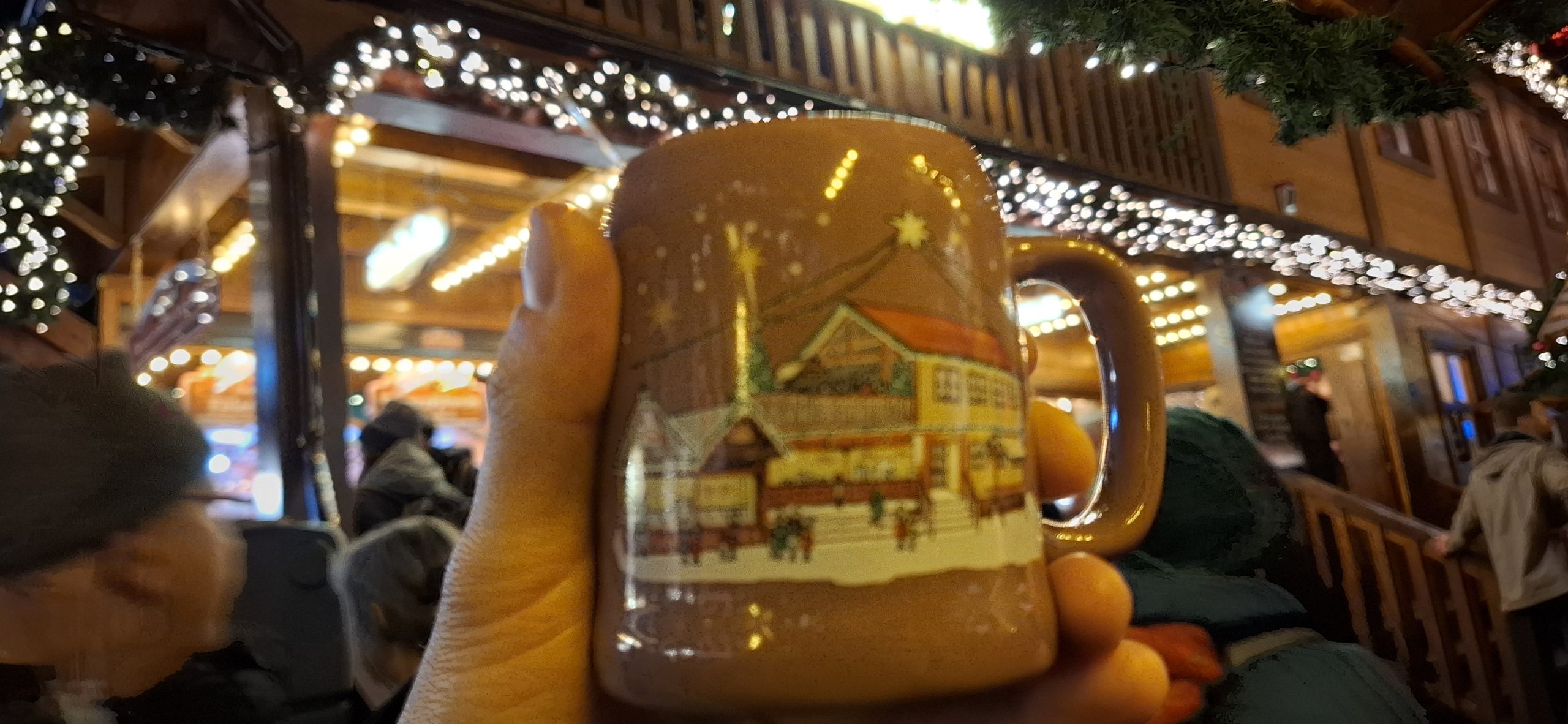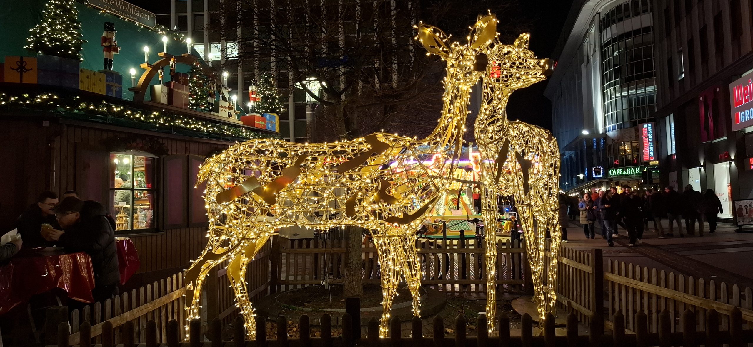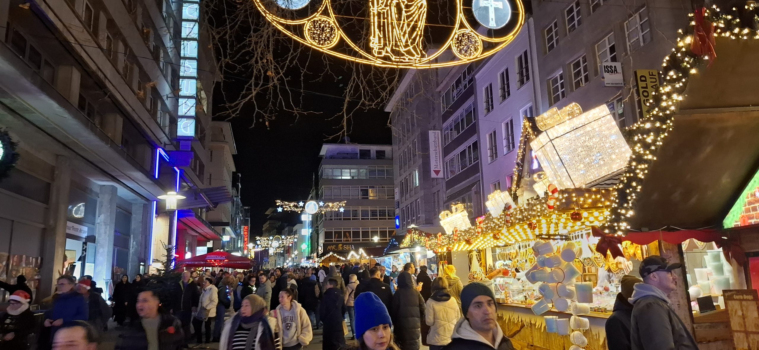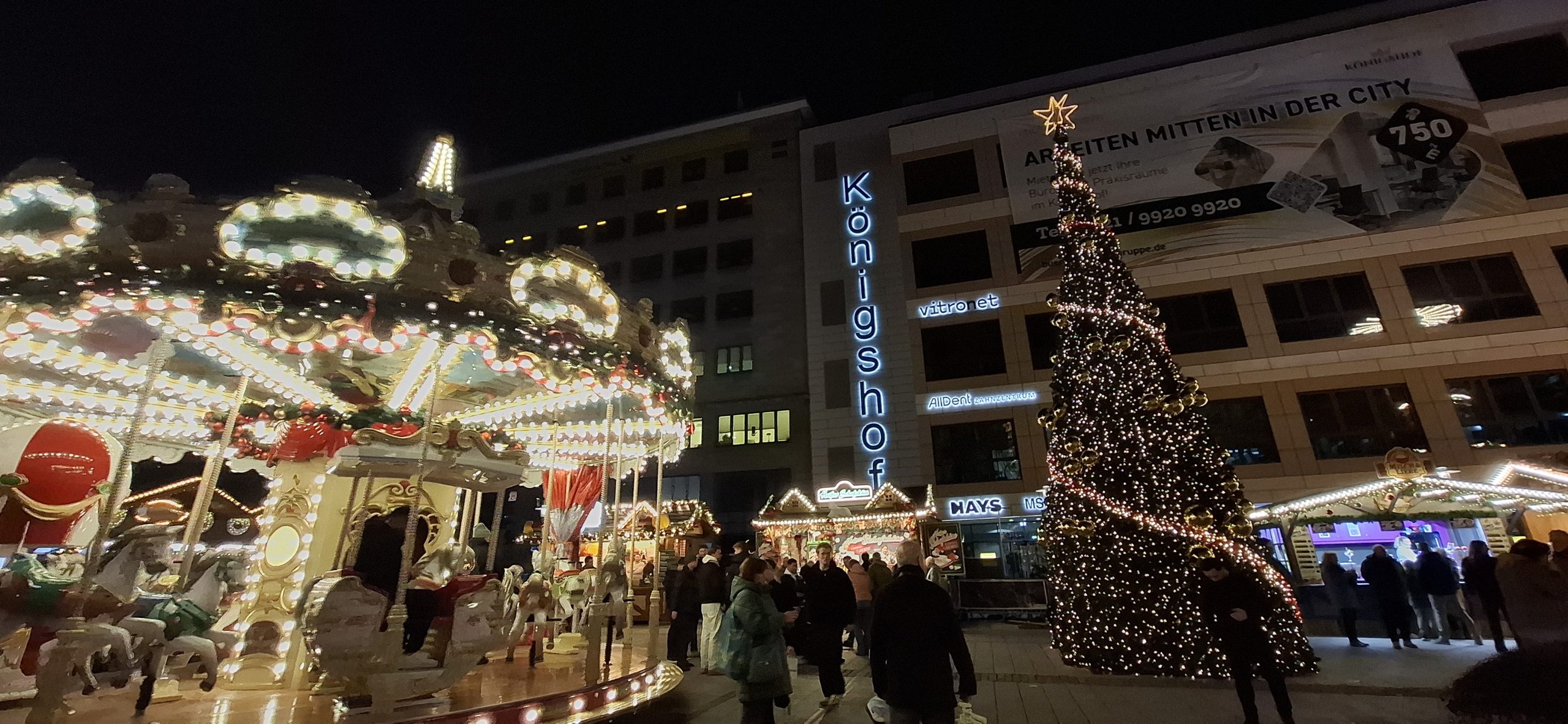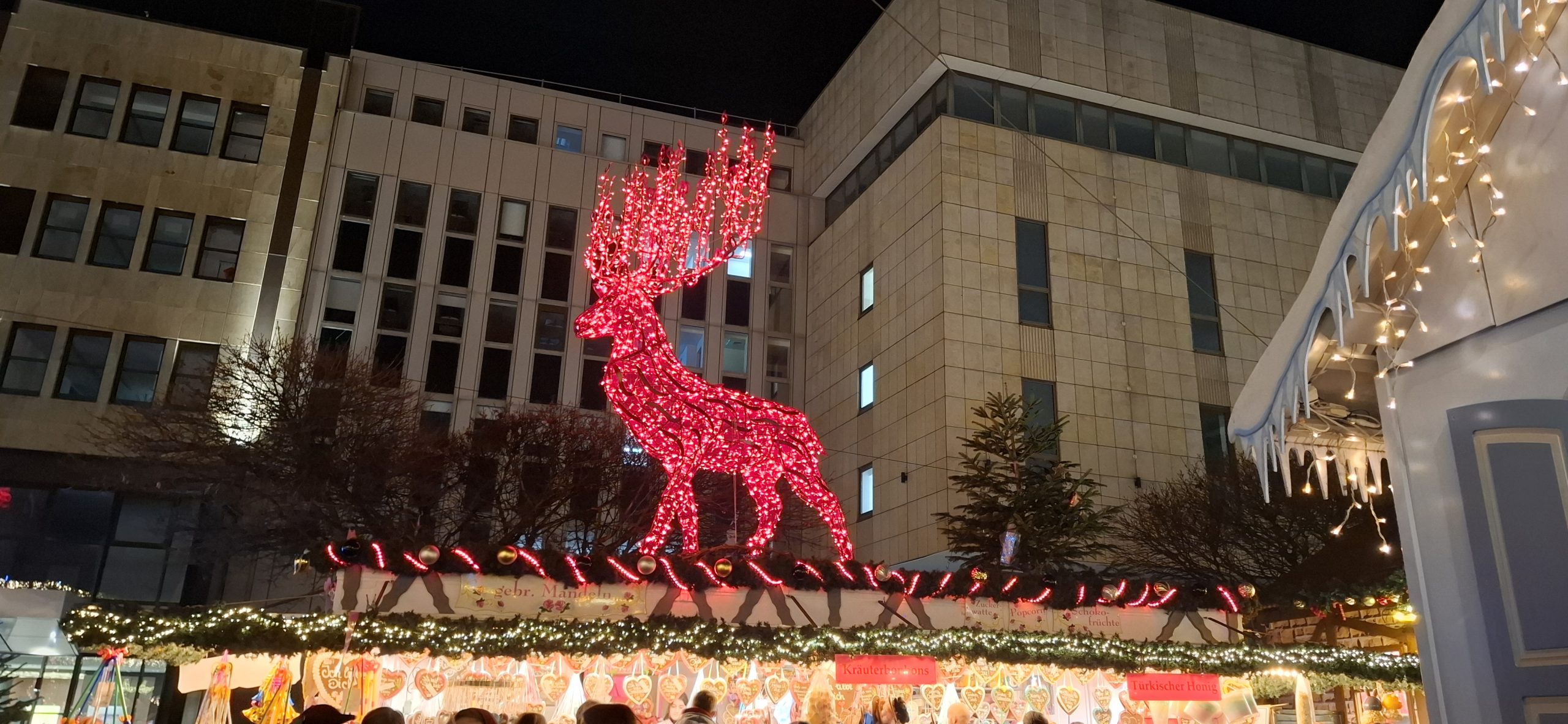 Am Dienstag, dem 16. Dezember 2025, waren wir nach der Arbeit noch auf dem Weihnachtsmarkt in Essen. Dementsprechend früh machte ich Feierabend, um Tani abzuholen. Wieder fuhren wir mit dem Mercedes A 150 meines Großvaters, da mein BMW in der Werkstatt war. Am selbigen Tag habe ich übrigens telefonisch mitgeteilt bekommen, dass der Motor auseinander genommen wurde und die auf ein spezielles Werkzeug warten, was die für die Steuerzeiten brauchen. Die Werkstatt ist etwas mehr auf Diesel als auf Benziner ausgelegt. Ich holte also Tani ab und wir fuhren direkt durch nach Essen. Geparkt haben wir im Parkhaus gegenüber vom GOP in Essen, die Fahrt war wieder relativ flüssig. Von da gingen wir dann zum nur wenige Gehminuten entferntem Weihnachtsmarkt.