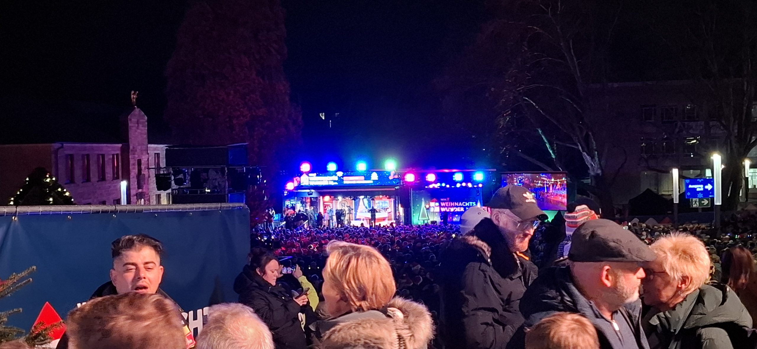 Zuerst kommt man von da aus auf den Mittelalterteil. Relativ schnell trübte sich aber schon die Stimmung, da Tani eine Arbeitskollegin gesehen hatte, weswegen wir einen Schlenker machten und eine andere Richtung einschlugen. Von da an war der Abend leider nicht mehr wirklich schön. Wir gingen an der Bühne auf dem Burgplatz vorbei, auf dem dieses Jahr das WDR2 Weihnachtswunder stattfand. Entsprechend voll war es da und man konnte auch nicht mehr auf den Platz, der war wegen Überfüllung gesperrt und via Lautsprecher wurden die Leute umher aufgefordert, weiterzugehen und nicht stehenzubleiben.