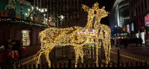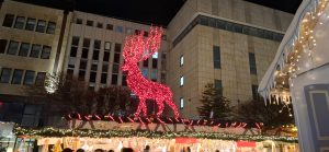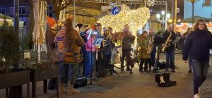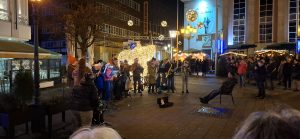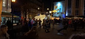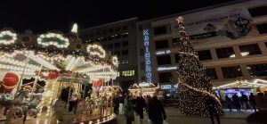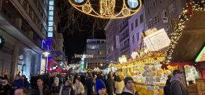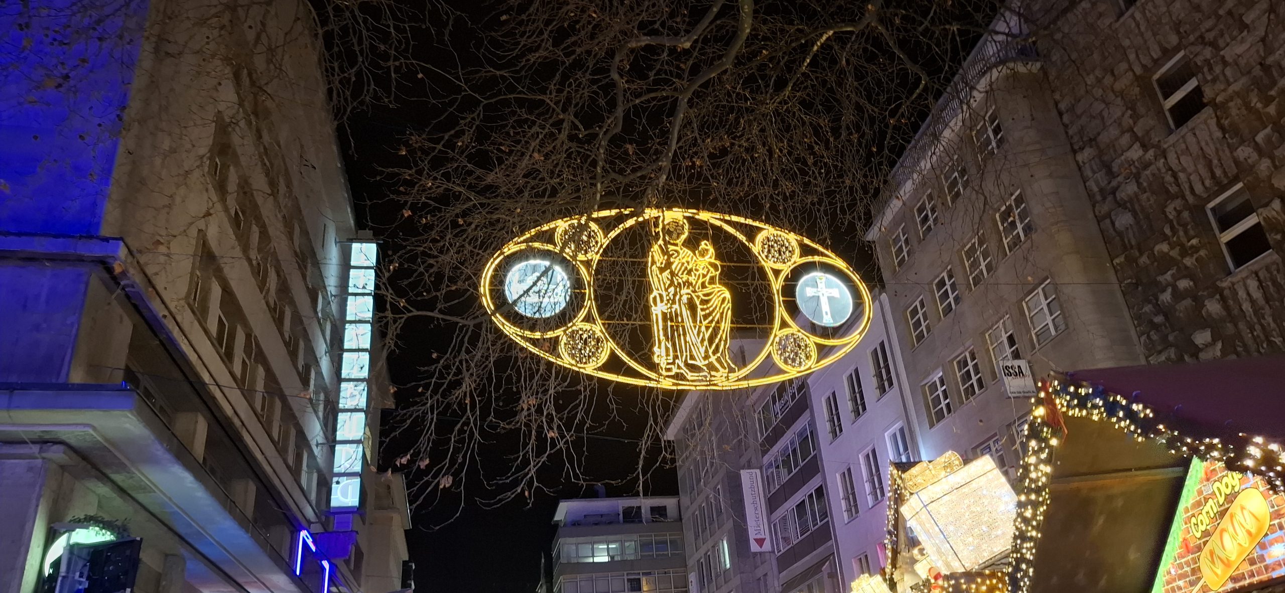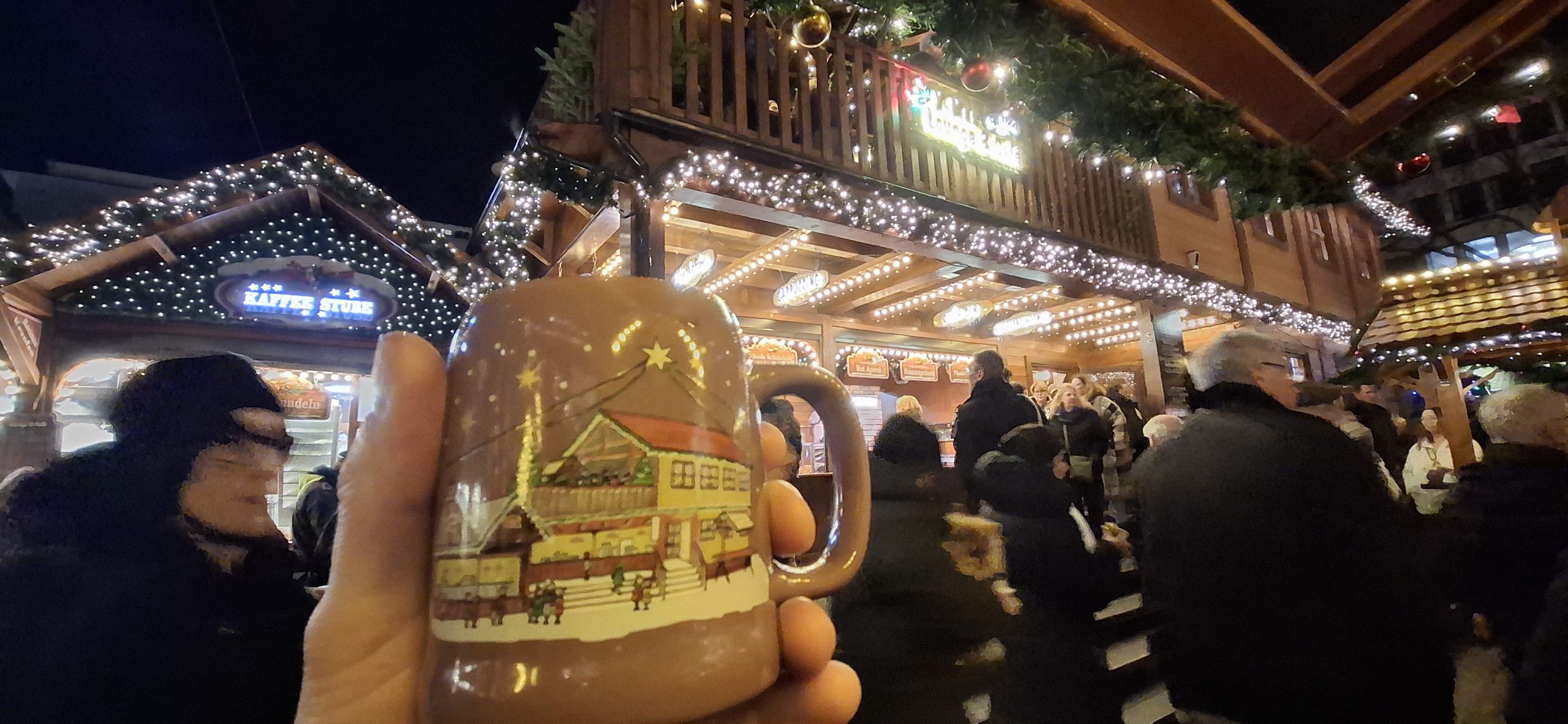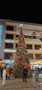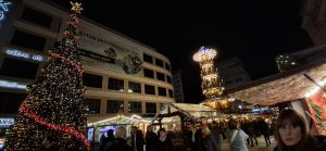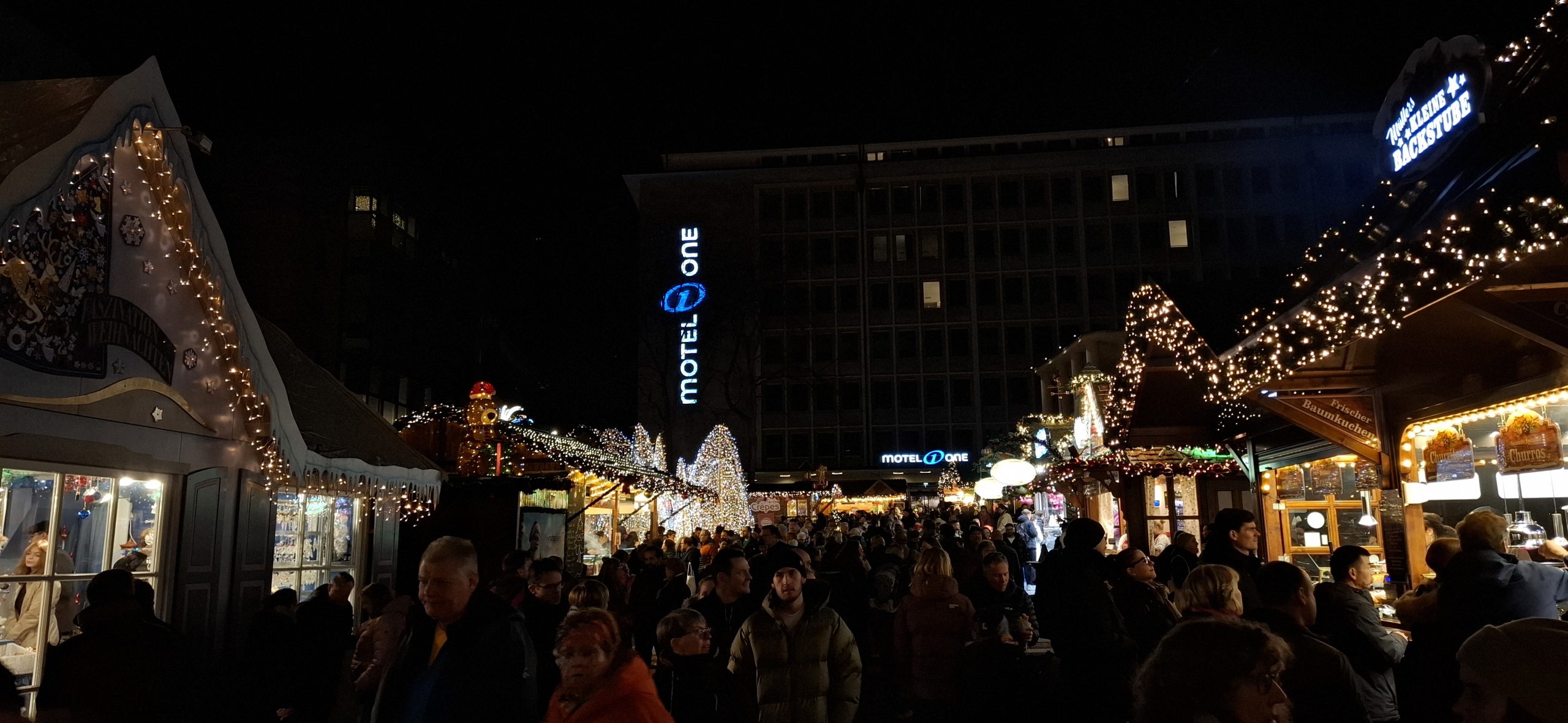 Wir gingen zuerst bis zum Ende Richtung Hauptbahnhof, von da dann zurück. Zwischendurch sahen wir noch ein Orchester, was in einem Seitenteil des Weihnachtsmarktes mit Blasinstrumente Weihnachtsmusik anstimmte. Auf dem großen Platz war wie jedes Jahr ein Lichtnetz von der Mitte aus über die Weihnachtsmarktstände gespannt. Der Langis-Stand war auch da, wo er jedes Jahr war.