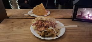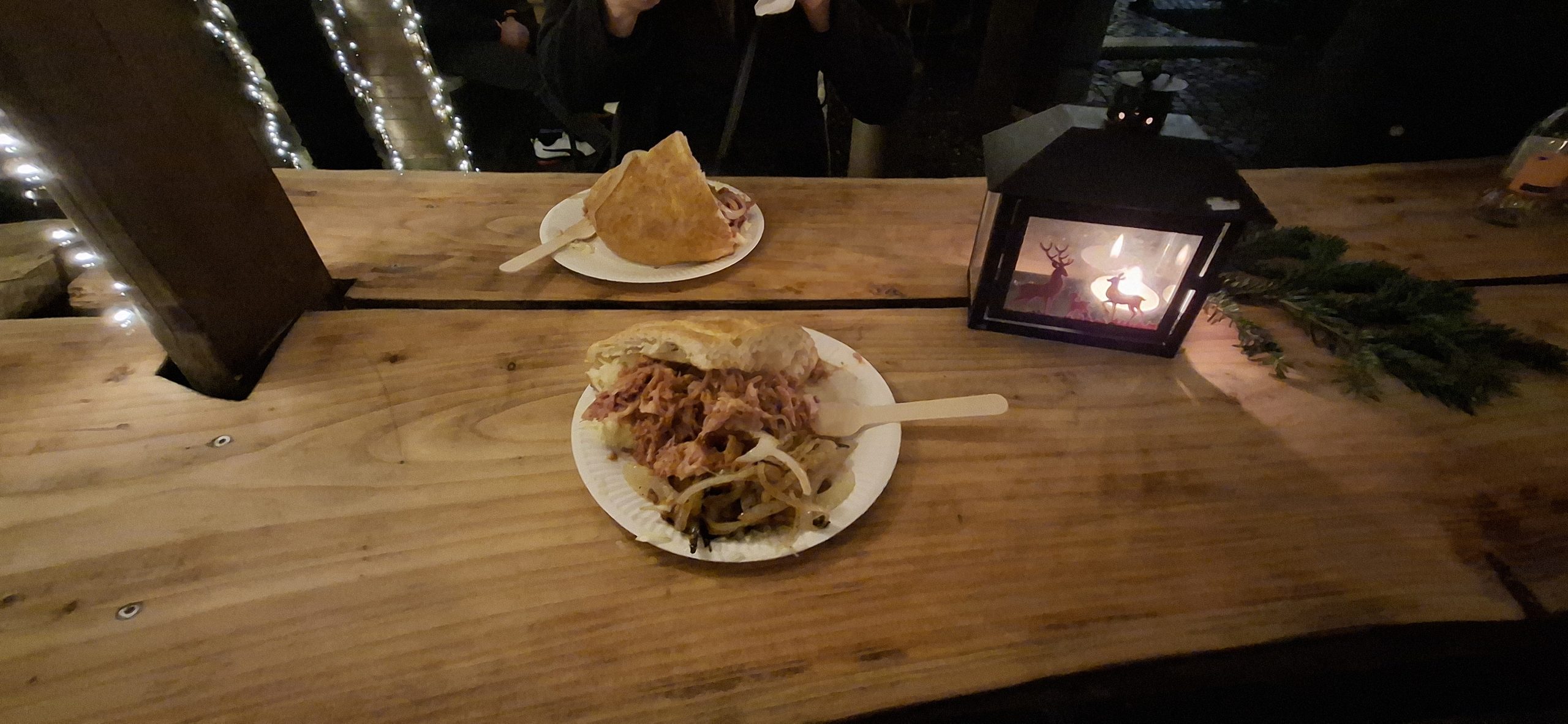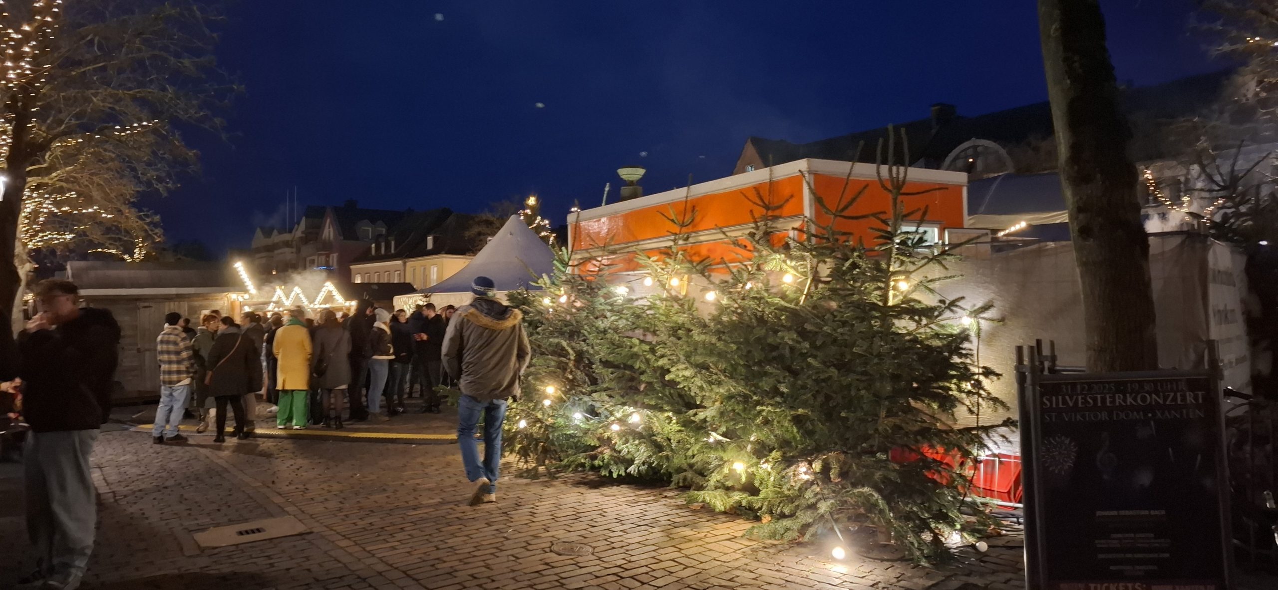Zuerst gingen wir eine Runde um den Weihnachtsmarkt, der bekanntlich nicht sehr groß ist. Dann gingen wir zum jährlichem Highlight: der Rheindöner. Ein „Döner“, allerdings mit Schweinefleisch, was ähnlich Pullet-Port ist und vor allem sehr saftig und zart. An sich mit das Beste, was man überhaupt auf Weihnachtsmärkte bekommt und was es nur dort in Xanten gibt.