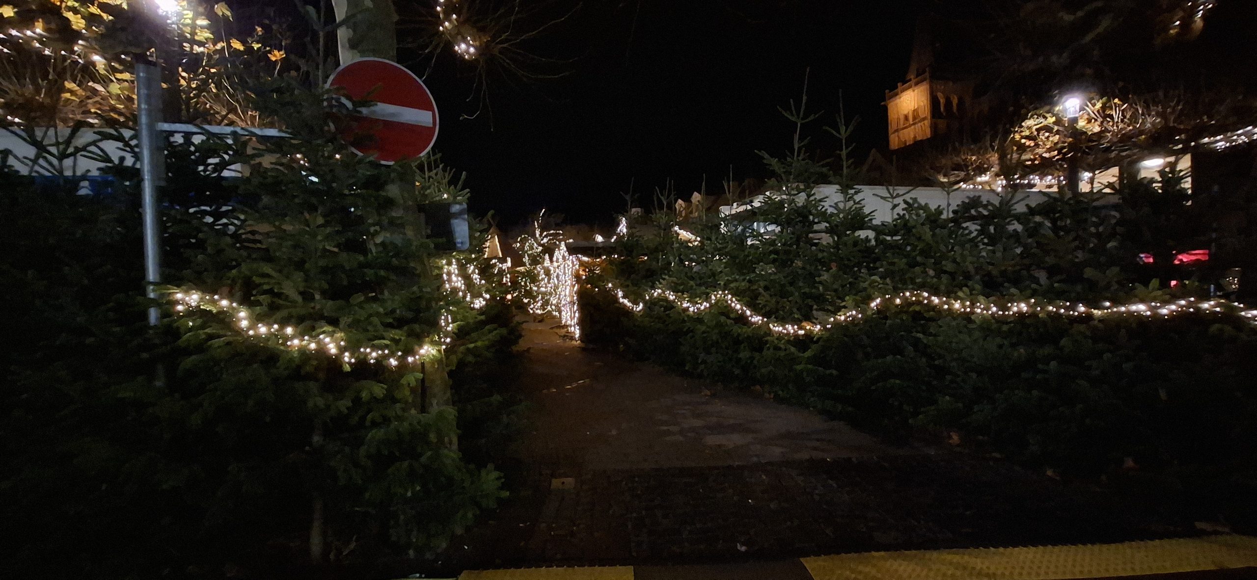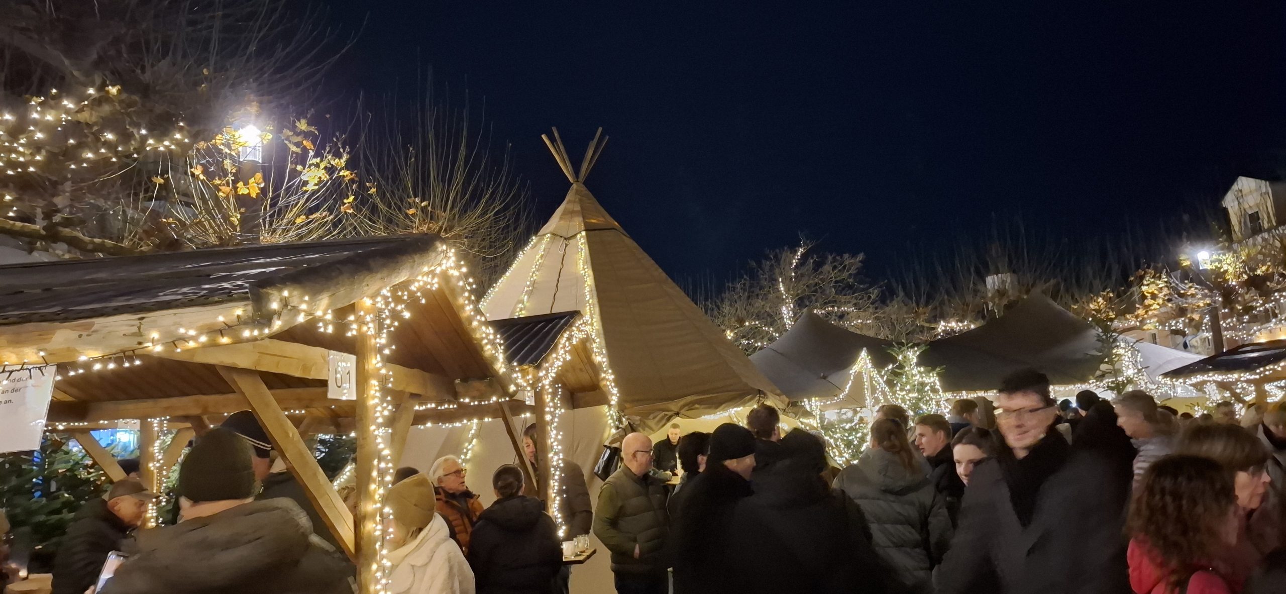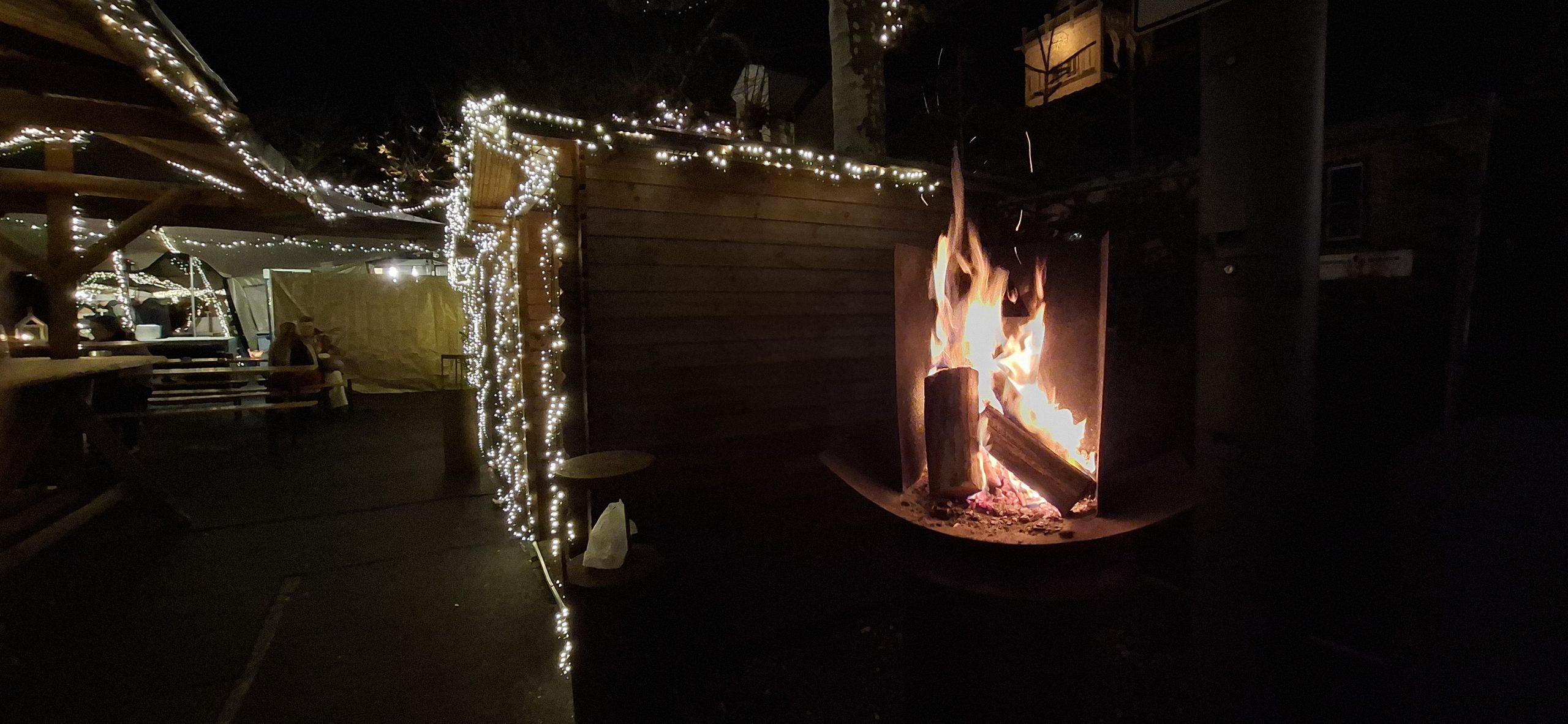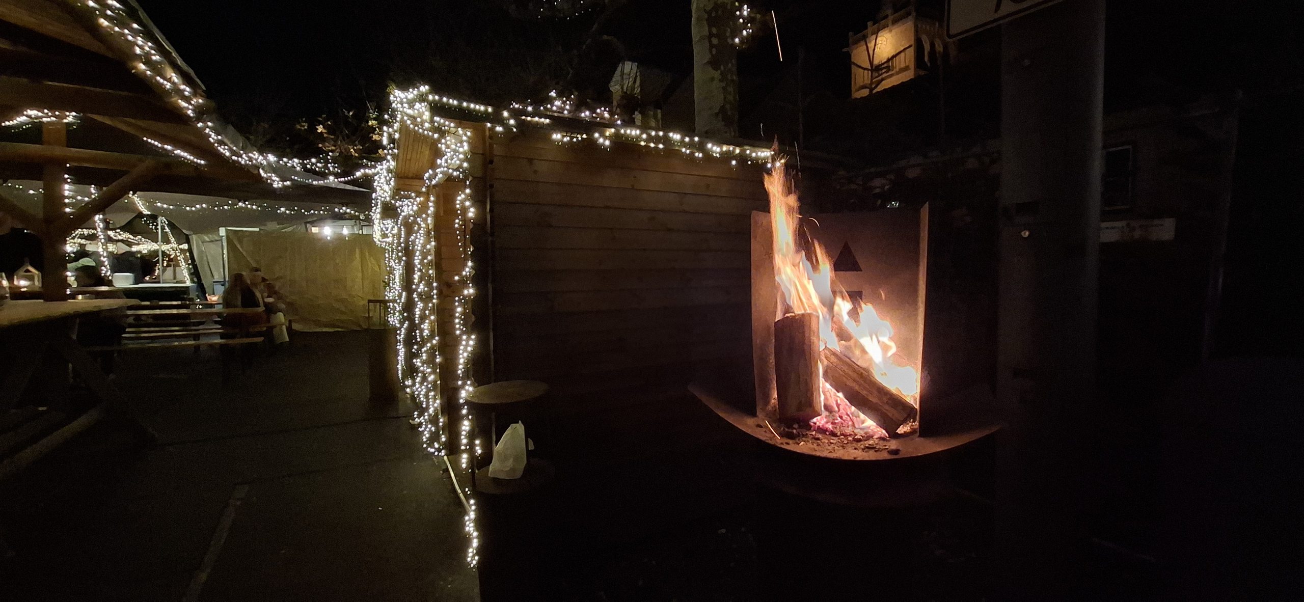 Ebenfalls gab es auch da schon ein 24/7 Laden mit Automaten. Der Markt war im Grunde wie immer, sehr schön, beschaulich und mit liebevollen Details, wie ein Sternprojektor in einem Zelt, in dem man sich unterstellen konnte, der Punkte auf die Zeltdecke projizierte und allgemein viele Zelte zum Unterstellen, sowie viele Hütten, in die man sich reinsetzen konnte.