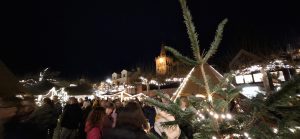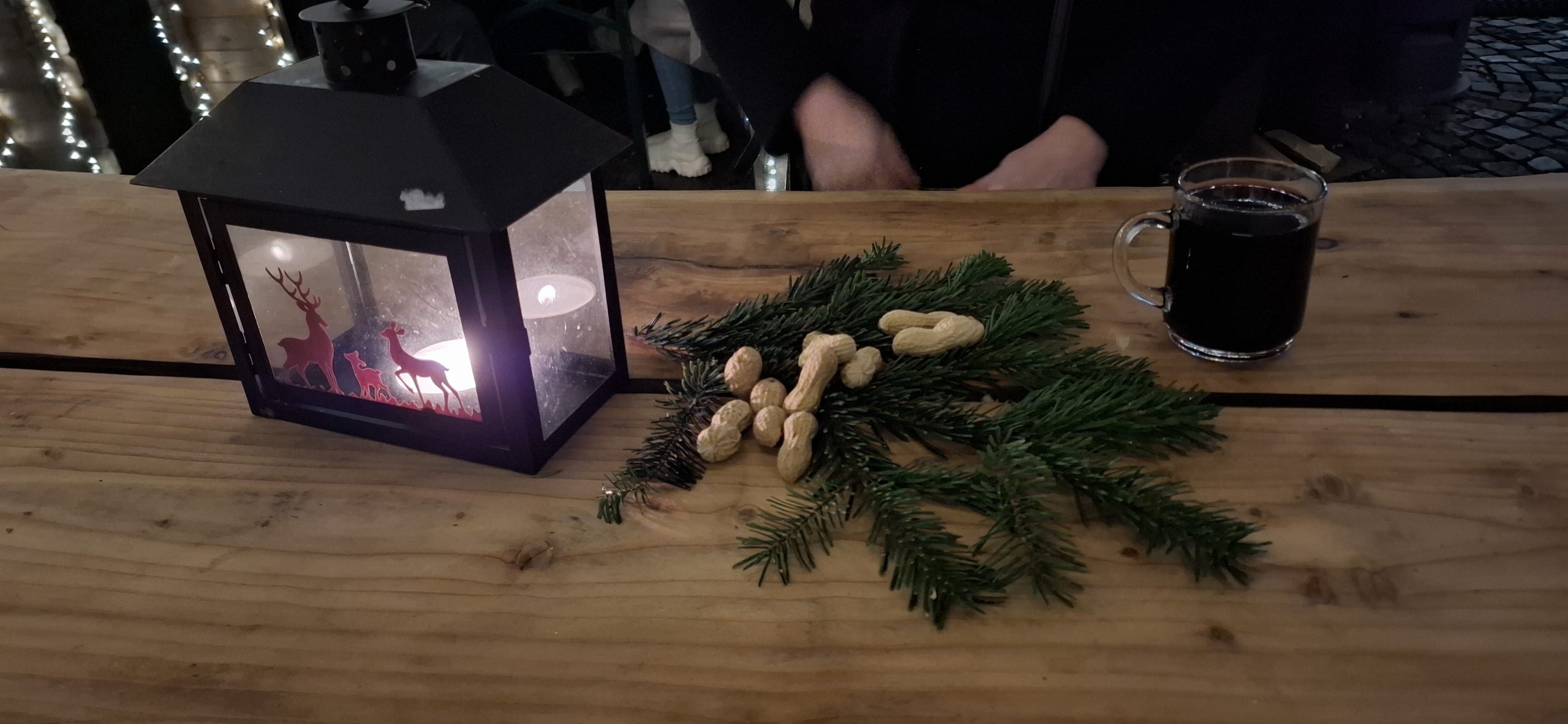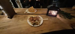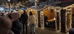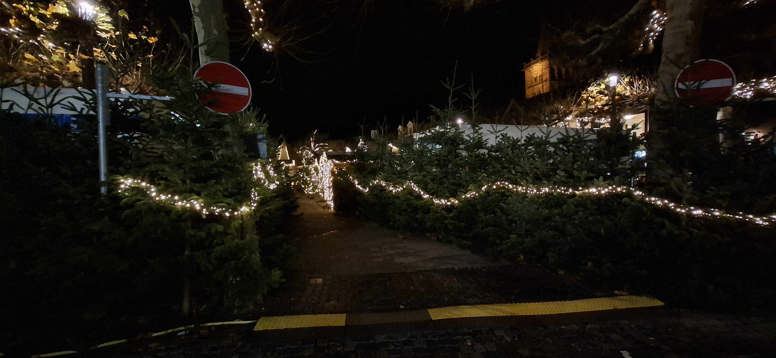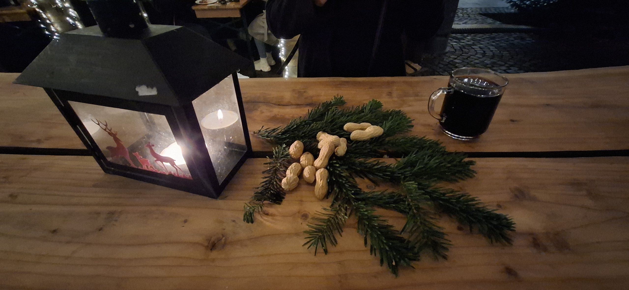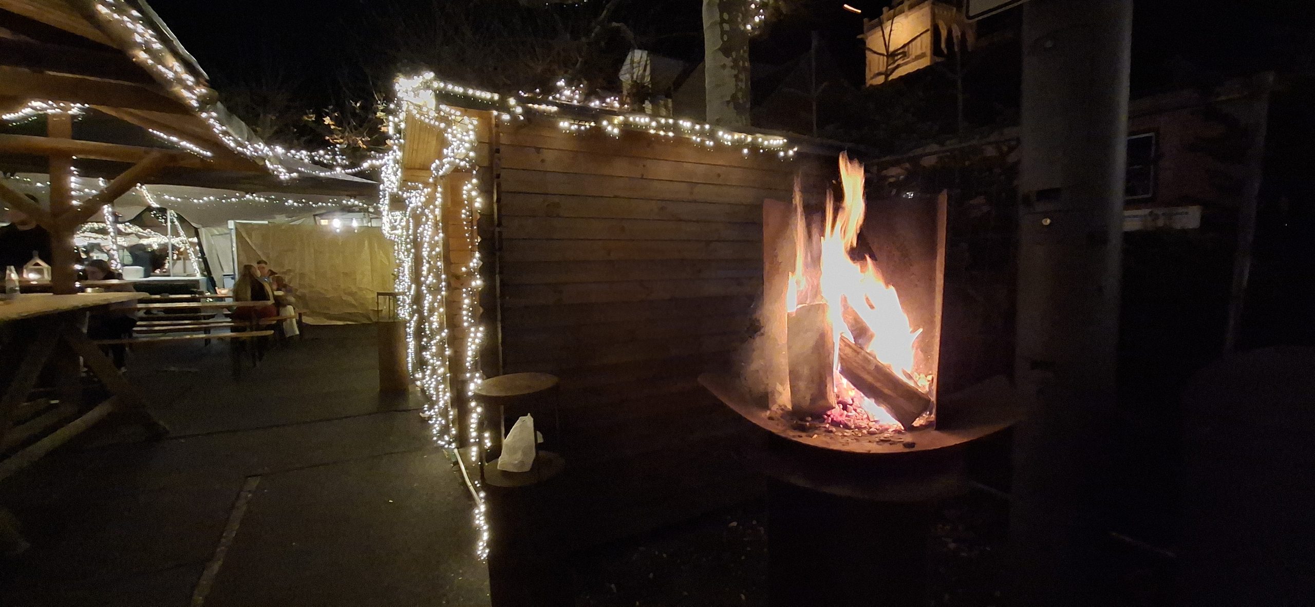 Ebenfalls gab es auch da schon ein 24/7 Laden mit Automaten. Der Markt war im Grunde wie immer, sehr schön, beschaulich und mit liebevollen Details, wie ein Sternprojektor in einem Zelt, in dem man sich unterstellen konnte, der Punkte auf die Zeltdecke projizierte und allgemein viele Zelte zum Unterstellen, sowie viele Hütten, in die man sich reinsetzen konnte.