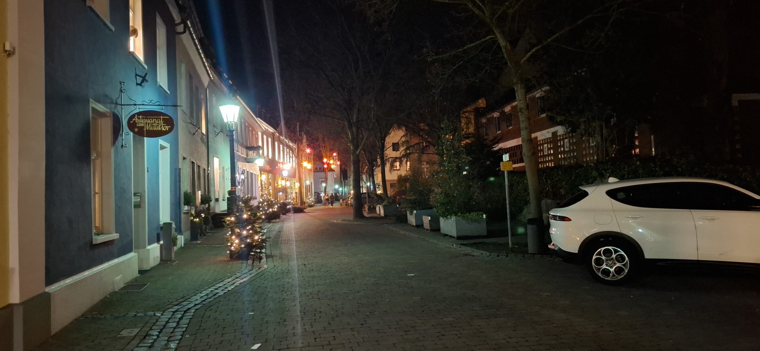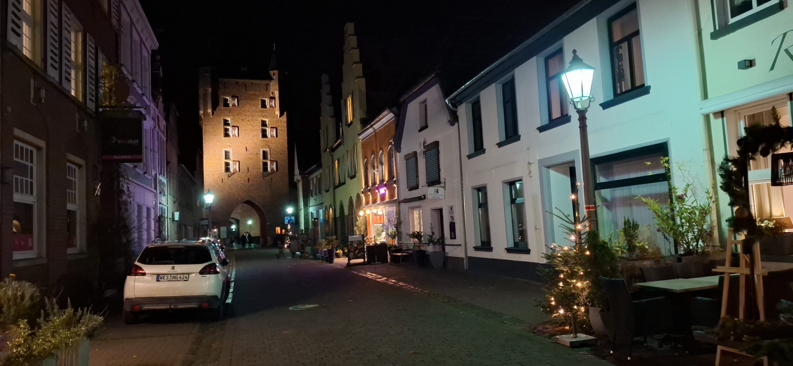In Xanten angekommen und nach einem regen Tannenbaum-Suchspiel fanden wir schon vor unserem angepeiltem Geheimparkplatz einen freien Quärparkplatz, auf dem ich mich sofort hinstellte. Ich stieg kurz aus, um auf dem Schild zu checken, ob man da wirklich frei parken darf und ja, außerhalb er Woche keine Einschränkungen.