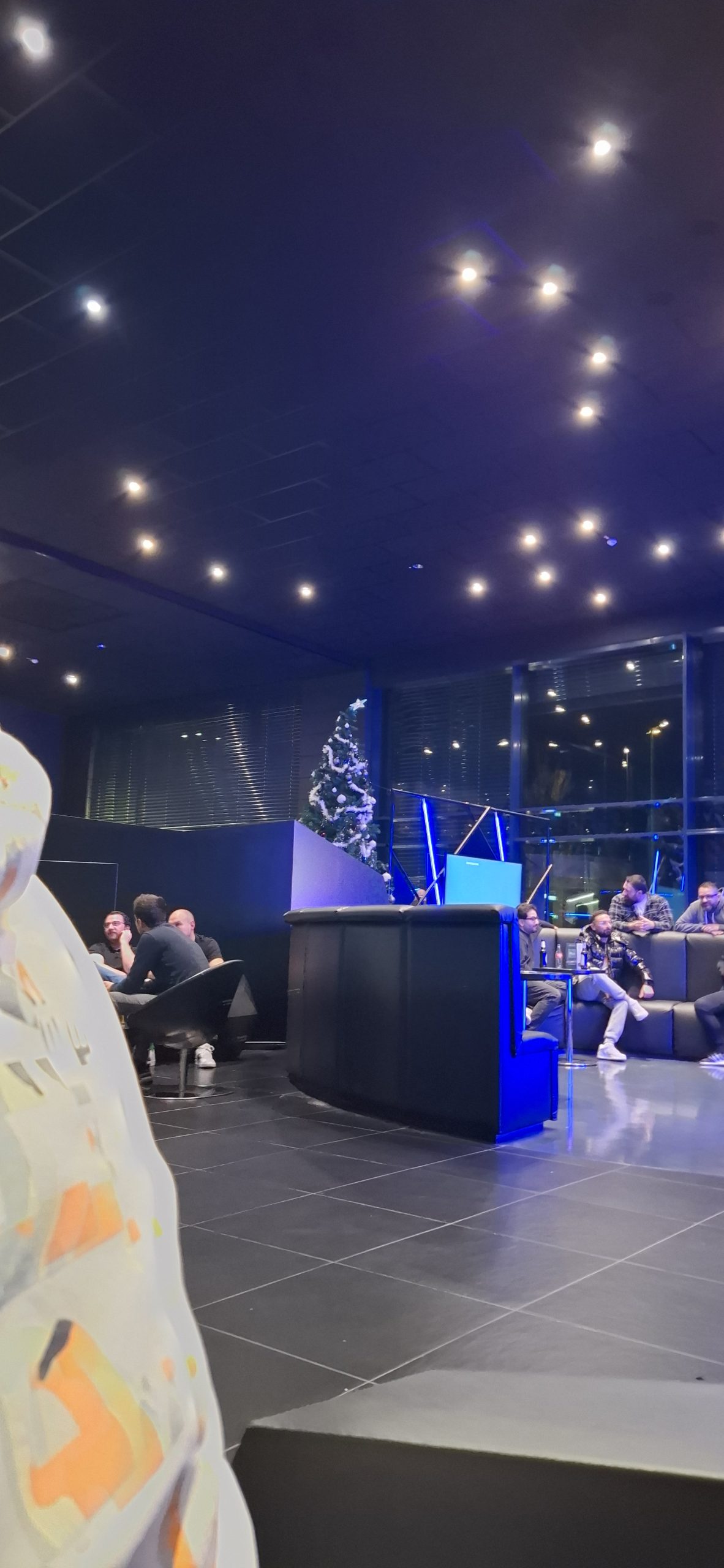 Am Freitag, dem 19. Dezember 2025 hatten wir in der Firma, in der ich arbeite (Tripin GmbH) Weihnachtsfeier. Zeitgleich war es wie mittlerweile traditionell jedes Jahr der letzte Arbeitstag des Jahres für mich, da ich ab dem nächsten Tag bis Neujahr Urlaub hatte. Die Firmenfeier verschlug uns dieses Jahr in die Sandbox in Oberhausen. Es ist eine VR-Box, in der man mit mehreren zusammen in einem virtuellen Raum ein Spiel spielt. Wir hatten „Stranger Thinks“. Nachdem wir auf der Arbeit gewichtelt hatten (ich bekam neben einem süßen Fakeminilego Hund eine Tasse mit dem Pressebild von mir aus der WAZ/ NRZ) und uns ein bis zwei kurze gönnten, ging es auch schon los. Wie immer habe ich es geschafft, nicht fahren zu müssen. Ich fuhr mit Vitaly mit, wie des Öfteren schon. Tolik fuhr mit seinem Wagen, ohne wen mitzunehmen, da er noch nach Düsseldorf musste und erst nachkommen wollte. Ansonsten ist nur noch der Lukas gefahren, das hatte gereicht. Auf dem Weg zur Sandbox Oberhausen (im Gewerbegebiet am Centro) fuhren wir erstmal einen Umweg nach Duisburg Marxloh zur Wohnung von Vitaly, seine Frau sowie ein paar Biere und eines seiner „Notfalljägermeister“ abholen. Nachdem wir Vitalys Frau einsackten, gings auch schon ziemlich schnell auf, da wir spät dran waren. Einen Jägermeister im Auto trinken war unmöglich, man hätte beim Einschenken ins Schnapsglas wohl die halbe Flasche im Auto verteilt. Wir kamen schließlich als Erstes am Parkplatz von Sandbox an (was seltsam war, da Lukas zur gleichen Zeit ohne Umweg direkt dahin startete) und warteten ein wenig und leerten ein bisschen Glasflaschen. Als schließlich Lukas Gruppe auch ankam, gingen wir rein, um uns anzumelden. Man meldete sich über einen QR-Code am Handy oder eines der dort stehenden Tablets an, danach setzte man sich in eines der Warteareas, die überall verteilt waren. Aus kurz wurde lang, aus lang sehr lang. Wir brachten unsere Sachen zu den Spinten. Wir warteten ewig, Tolik der erstmal telefonisch meinte, unsere Gruppe sollte zuerst spielen, da er später kommt (wir mussten uns, da noch eine begrenzte Anzahl an Personen pro Raum möglich waren, in zwei Gruppen aufteilen), war auch bereits angetroffen und immer noch kamen wir nicht rein. Irgendwann fing ich an, Blödsinn zu machen. Via Handy fand ich schnell eine Menge Shelly-RGBs, die einen Accesspoint hatten, auf dem ich rauf kam. Die Shellys steuerten die Beleuchtungen, die überall als Stripes verteilt waren, alle noch in Blau. Ich spielte einige Shellys durch und verbuchte die Farben zu ändern, was an sich funktionierte, allerdings sah ich nirgends ein sich änderndes Licht und übertreiben wollte ich es auch nicht. Wir warteten so lange, dass wir sogar unsere Reservierung für das nebenstehende Restaurant (China All-You-Can-Eat-Bufett) verschieben mussten, was zum Glück klappte. Schließlich war es so weit und wir konnten endlich in den Raum. Wir bekamen jeder jeweils für jede Hand und jeden Fuß ein Sensor mit Kugeln obendrauf, wohl zum Tracken unserer Bewegungen im Raum. Im Raum selbst bekamen wir dann noch die VR-Brillen. Nachdem wir im virtuellen Raum waren und Vitalys virtuelles Ich sich horrorartig verrenkte und verkleinerte (was ein scheinbarer Neustart behob), bekamen wir noch eine Art Taschenlampe. Die Teile schwebten in der Luft und ich wollte schon fast danach greifen, als es hieß, dass sie uns gebracht werden, ich dachte, die wären rein virtuell, tatsächlich waren es aber reelle Gegenstände, die wir in die Hand bekamen. Dann begann das Spiel. Wir mussten im Grunde Gegenstände mit dem Strahl unserer Taschenlampe zu uns ziehen und gegen Monster wegschleudern, um die Monster zu besiegen. Es ging im Grunde darum, die Monster, mal größere, mal kleinere zu besiegen. Ab und an kam dann mal sowas wie das ein Polizeiauto über uns hinweg flog. Sterben konnte man im Spiel nur sehr kurz, man war nach einigen Sekunden wieder im Spiel. Das Spiel war sehr schnell zu Ende, wir hörten uns über Headsets, was ein wenig komisch war. Vitalys Frau rief beim Schlagen der Monster immer „tsch“, was schon irgendwo lustig war. Man konnte die Monster im übrigen auch schlagen und treten. Das Hauptziel des Spiels haben wir übrigens nicht geschafft, schlichtweg, weil wir auch gar nicht wussten, dass es eine Aufgabe war: Wissenschaftler, die da rumliefen retten. Schließlich war das Spiel zu Ende, wir zogen den Kram wieder aus, machten noch ein Foto und dann gings auch schon raus, zu Fuß zum naheliegendem China-Restaurant. Vorab habe ich es übrigens geschafft, ein Shelly-RGB-LED-Streifen rot zu schalten, den ich auch gesehen habe, es war ein Raum. Auf dem Weg zum Restaurant kam noch ein Lamborghini vorbei. Im Restaurant gab es wieder ein All You Can Eat Bufett. Einige sehr leckere Sachen waren dabei, wie Suschi und vor allem gab es da quasi einen ganzen richtig leckeren Lachs, von dem man sich was mit einer Zange wegnehmen konnte. Das Restaurant heißt übrigens Xiao. Wir saßen an einem Fenster, ich direkt am Fenster, Richtung Hauptstraße am Centro. Vom Platz aus konnte man genau den Blitzer sehen und immer wieder mal sah man, auch wenn, der geblitzt wurde. Nach dem Essen sammelten wir uns wieder zu den Fahrzeugen und die ersten verabschiedeten sich. Ich fuhr mit Vitaly zur Firma zurück und von da aus mit dem Mercedes meines Großvaters (mein BMW ist ja in der Werkstatt) weiter. Ich nahm Lukas noch mit nach Duisburg und fuhr da einen kleinen Umweg. Daheim angekommen startete nun endlich mein Jahresendurlaub.