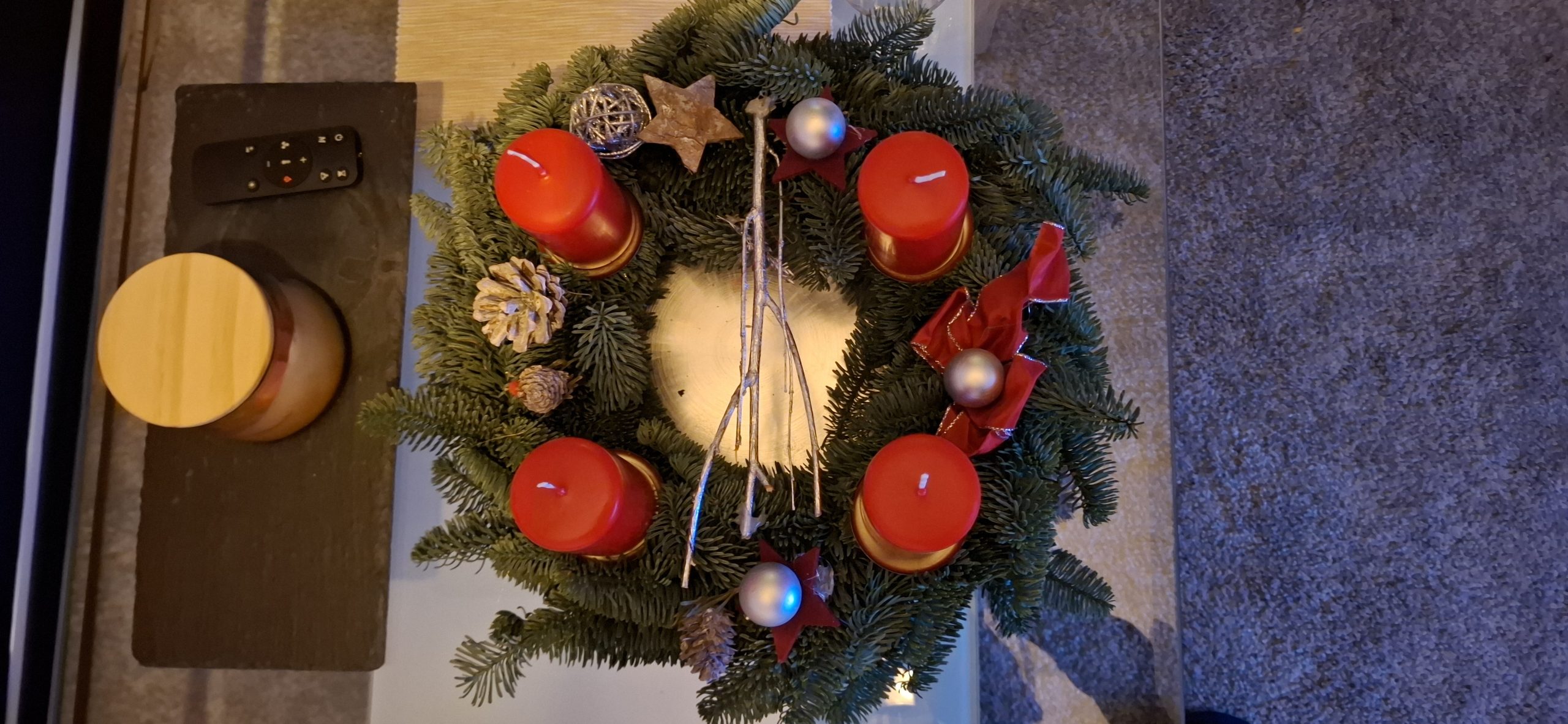 Am ersten Advent haben wir in diesem Jahr den Adventskranz gemacht, diesmal habe ich den alleine gebastelt, da Tani keine Lust hatte und die Stimmung bei uns nicht so gut war. Am selbigen Tag hatte übrigens auch unser Elchbärchi (Bärchi 1) seinen ersten Geburtstag.