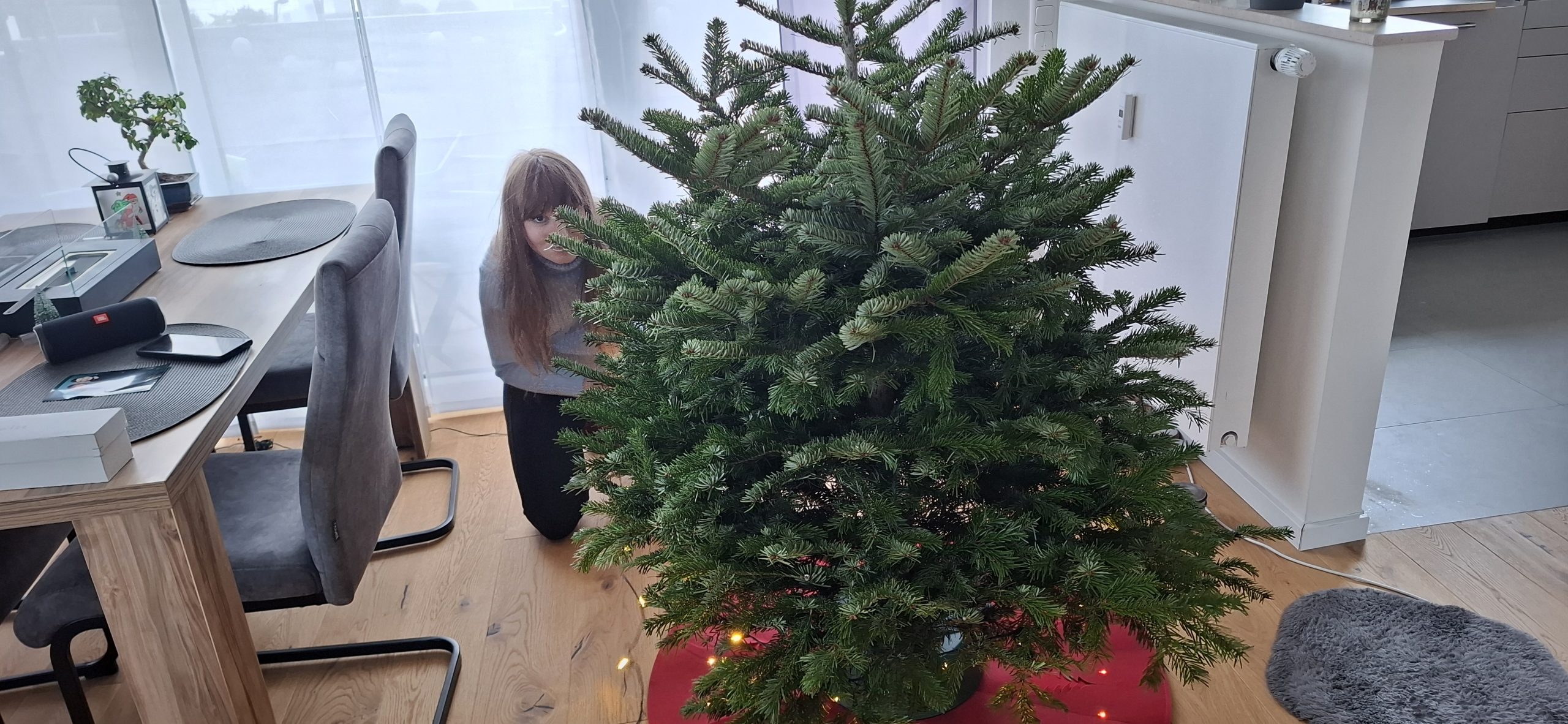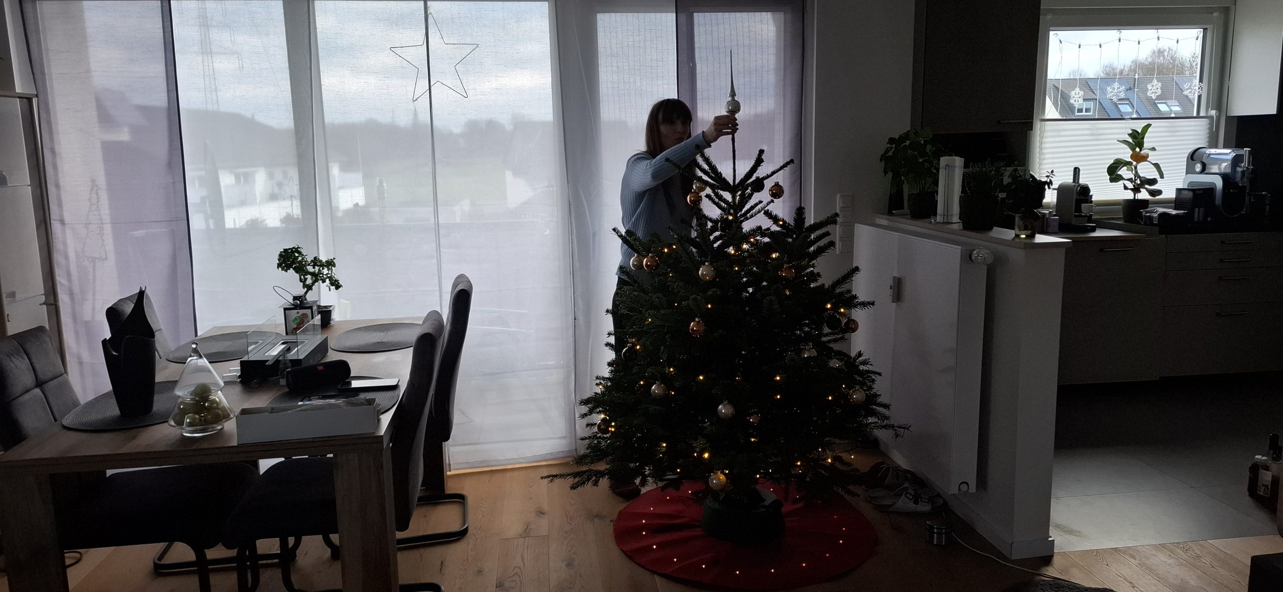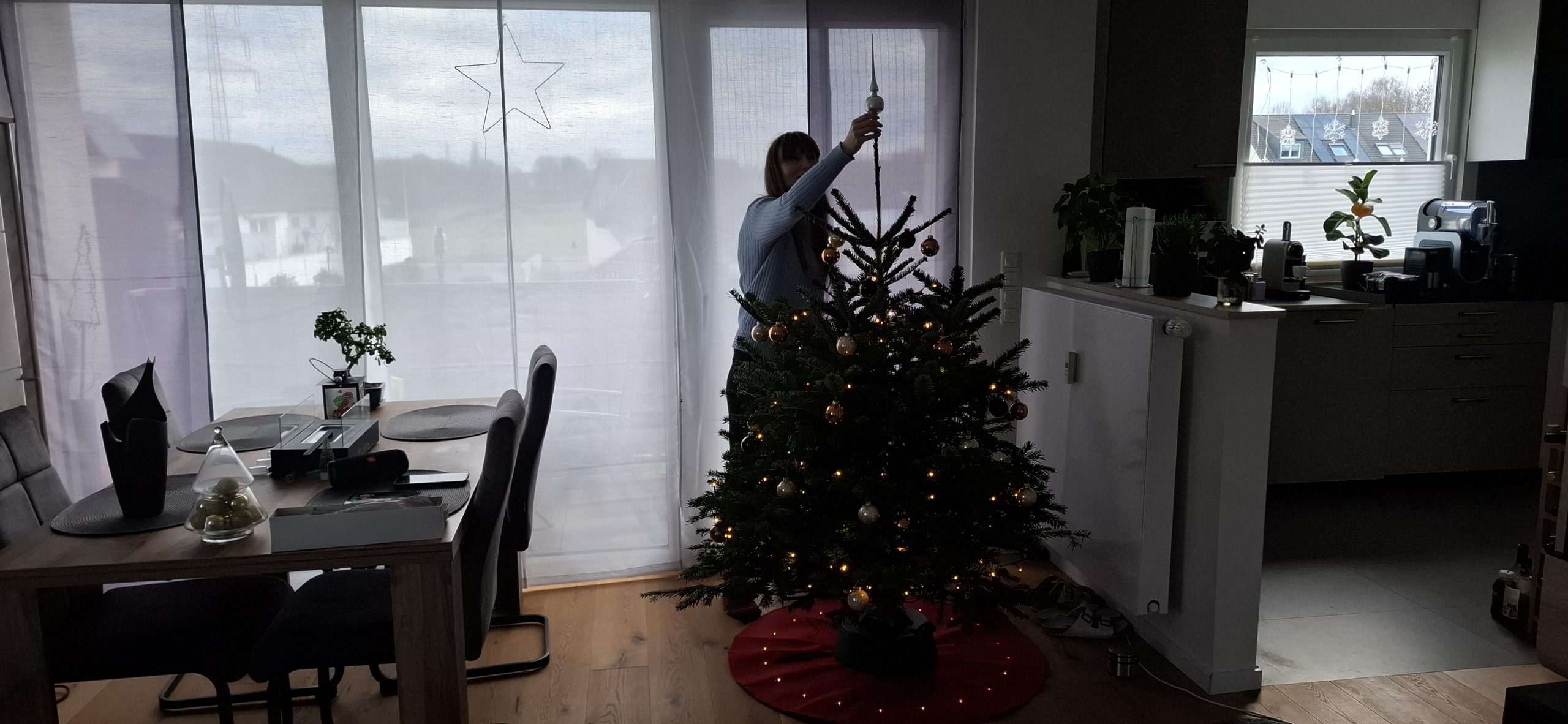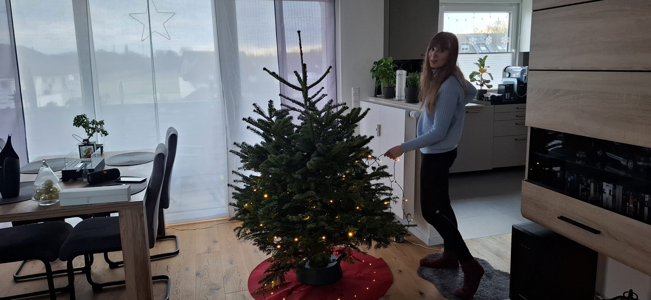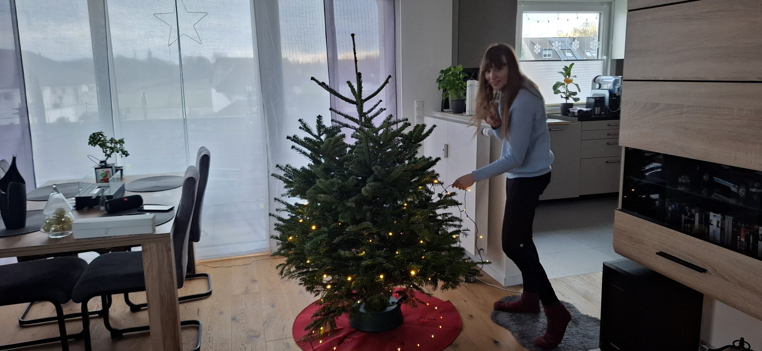 Am Weihnachten, Mittwoch, dem 24. Dezember 2025 hatten wir den typischen Ablauf. Zu Essen gab es den guten Lachs, den wir tags zuvor bei EDEKA an der Fischtheke gekauft haben, mit Nudeln und Soße. Danach ging Tani wieder zu Ihren Eltern, um mit denen in die Kirche zu gehen. Wärenddessen telefonierte ich erstmal mit meinen Eltern sowie Großeltern und machte mich dann auf, mit dem Mercedes meines Opas (da mein BMW ja noch in der Werkstatt war) das Geschenk für Tani von meiner Arbeit abholen. Das Problem: Es war diesmal ein großes Geschenk. Verpackt hatte ich es zum Glück bereits in Ruhe am vorletzten Arbeitstag, somit musste ich das Geschenk nur ins Auto packen und heim fahren. Es war ein Weinkühlschrank, sowie eine Tasche aus dem Beuringer Onlinestore. Vitaly feierte eine Weihnachtsparty im Keller auf der Arbeit, er hatte schlussendlich nicht mal bemerkt, dass ich im Gebäude war und die Pakete holte, obwohl ich mich ankündigte. Dabei war es nicht mal mehr eine Kleinigkeit. Die Tasche war nun nicht das Problem, allerdings war das andere Geschenk ein Weinkühlschrank. Ich habe alle Sitze im Mercedes umgeklappt und so gerade eben noch alles reinbekommen. An der Arbeit rief ich noch den Max an, wie es ihm so geht und einmal zum frohe Weihnachten wünschen. Seine Eltern waren bei ihm zu Besuch. Ich fuhr mal kurz vorbei, redete ein wenig mit den allen und war ca. eine viertel Stunde bei denen. Da konnte sich Max auch kurz die Rentnerschaukel, die ich zurzeit fahre, anschauen. Dass das Bremslicht defekt war, sah er natürlich direkt. Die hatten übrigens den Kamin angehabt, ein schönes Feuer, auch wenn er unter anderem die ungeeigneten Pressholzscheitel für geschlossene Kamine verwendete. Danach fuhr ich wieder heim, wollte schließlich vor Tani daheim sein. Dann musste ich noch das große Geschenk das Treppenhaus hochtragen und stellte es hinter dem Weihnachtsbaum. Den Karton mit der Tasche stellte ich vor dem Baum. Als Tani dann irgendwann nach Hause kam und den Karton der Tasche sah, fragte sie schon, was das für ein großes Geschenk sei und ich antwortete, dass ich ein kleines für sie versteckt hatte. Ca. eine Minute später sah sie auch den ganz großen Karton. Dann gings zur Bescherung. Zuerst sollte ich ein Geschenk öffnen, dass, von dem ich natürlich wusste, dass es Gürtel und Unterhosen waren, die wir schließlich vor kurzen zusammen bei Galeria kauften. Tanis erstes Geschenk konnte sie auch erahnen, da es relativ abgesprochen war. Dann kam das zweite Geschenk von Tani an mich. Ich schrieb vorab auf mein Handy auf, was ich vermute, was es ist. Es war ein kleiner Karton. Ich schrieb „JBL Kopfhörer“ und damit behielt ich Recht. Das Gleiche übrigens andersherum, Tani schrieb auf, was sie meint, was in dem ganz großen Karton ist und da sie „Weinschrank“ schrieb, behielt auch sie recht damit. Den Rest des Abends haben wir dann gemütlich mit Fernsehe ausklingen lassen.