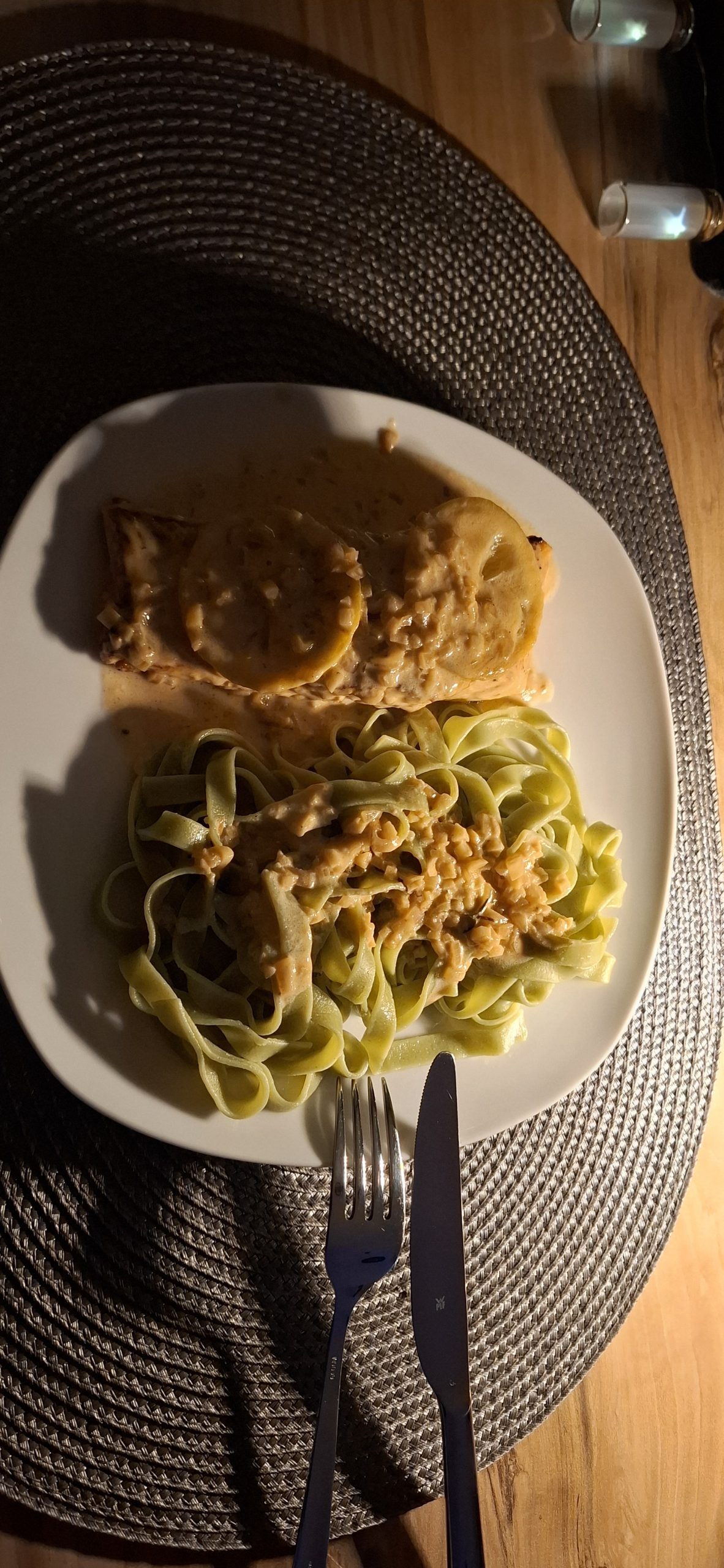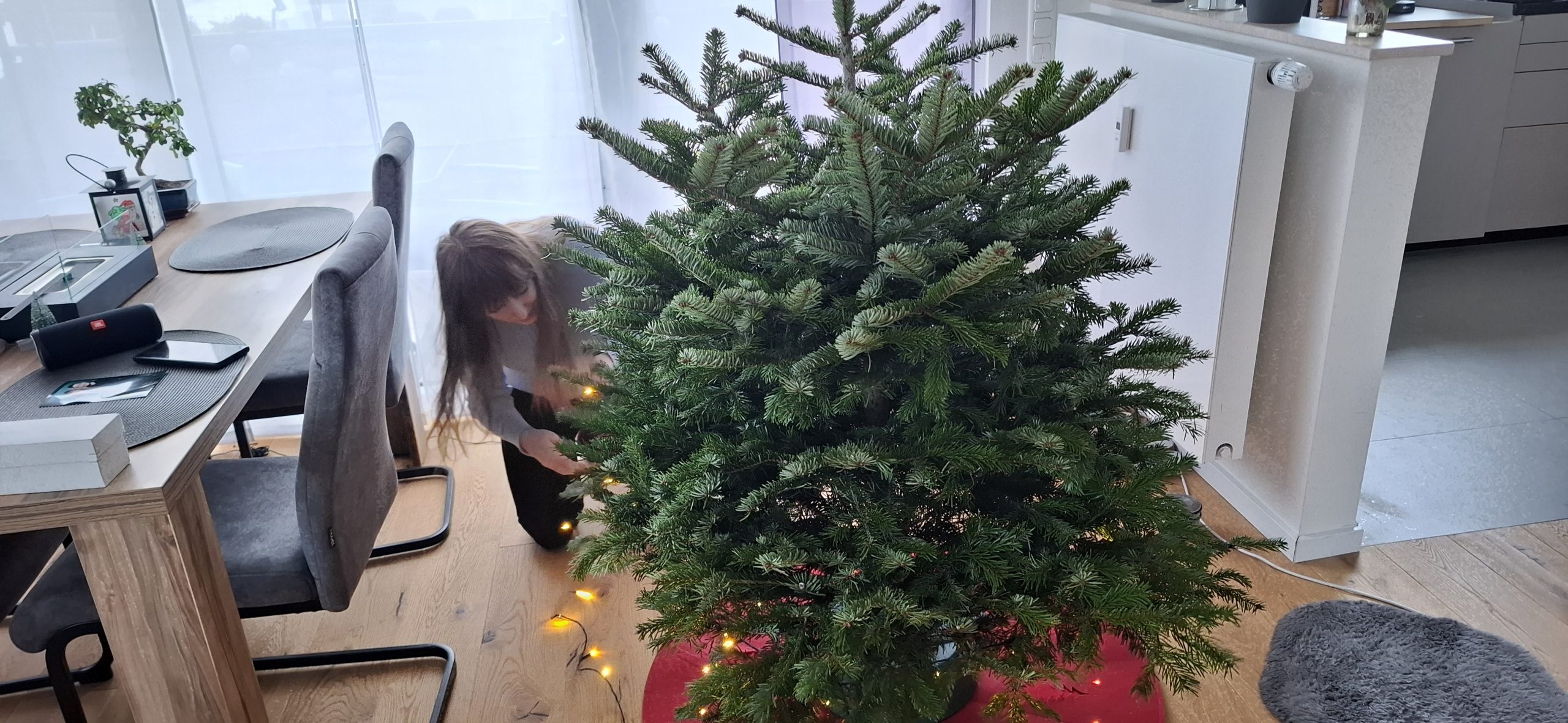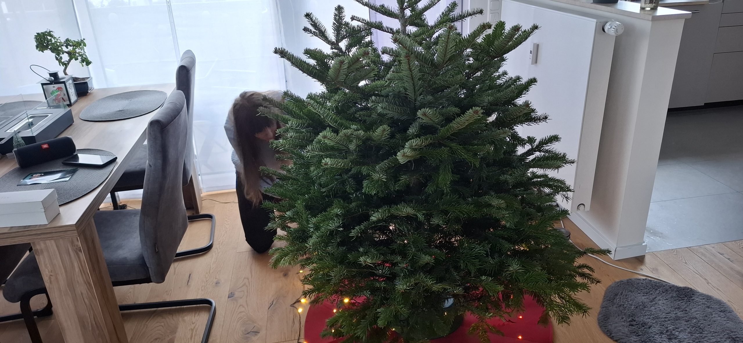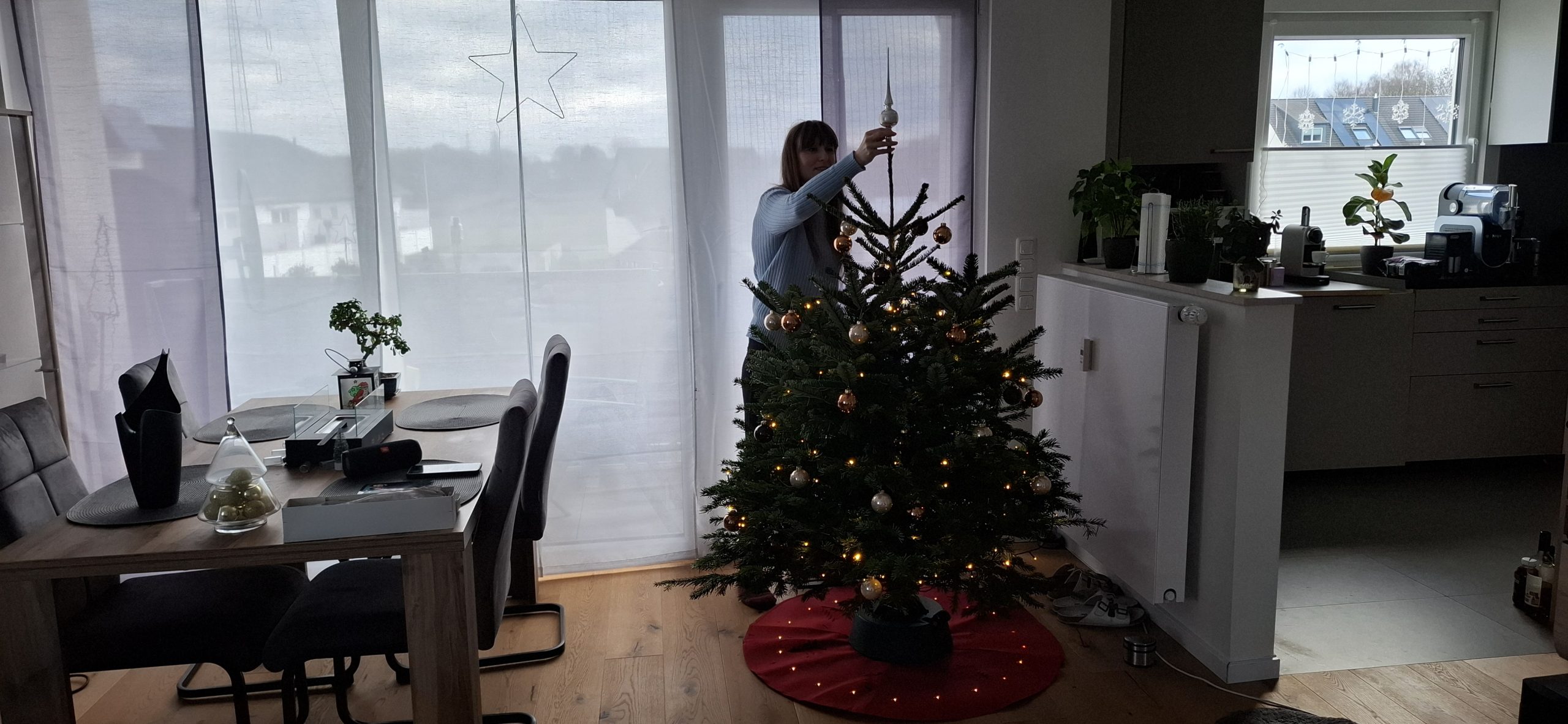 Am Weihnachten, Mittwoch, dem 24. Dezember 2025 hatten wir den typischen Ablauf. Zu Essen gab es den guten Lachs, den wir tags zuvor bei EDEKA an der Fischtheke gekauft haben, mit Nudeln und Soße. Danach ging Tani wieder zu Ihren Eltern, um mit denen in die Kirche zu gehen. Wärenddessen telefonierte ich erstmal mit meinen Eltern sowie Großeltern und machte mich dann auf, mit dem Mercedes meines Opas (da mein BMW ja noch in der Werkstatt war) das Geschenk für Tani von meiner Arbeit abholen. Das Problem: Es war diesmal ein großes Geschenk. Verpackt hatte ich es zum Glück bereits in Ruhe am vorletzten Arbeitstag, somit musste ich das Geschenk nur ins Auto packen und heim fahren. Es war ein Weinkühlschrank, sowie eine Tasche aus dem Beuringer Onlinestore. Vitaly feierte eine Weihnachtsparty im Keller auf der Arbeit, er hatte schlussendlich nicht mal bemerkt, dass ich im Gebäude war und die Pakete holte, obwohl ich mich ankündigte. Dabei war es nicht mal mehr eine Kleinigkeit. Die Tasche war nun nicht das Problem, allerdings war das andere Geschenk ein Weinkühlschrank. Ich habe alle Sitze im Mercedes umgeklappt und so gerade eben noch alles reinbekommen. An der Arbeit rief ich noch den Max an, wie es ihm so geht und einmal zum frohe Weihnachten wünschen. Seine Eltern waren bei ihm zu Besuch. Ich fuhr mal kurz vorbei, redete ein wenig mit den allen und war ca. eine viertel Stunde bei denen. Da konnte sich Max auch kurz die Rentnerschaukel, die ich zurzeit fahre, anschauen. Dass das Bremslicht defekt war, sah er natürlich direkt. Die hatten übrigens den Kamin angehabt, ein schönes Feuer, auch wenn er unter anderem die ungeeigneten Pressholzscheitel für geschlossene Kamine verwendete. Danach fuhr ich wieder heim, wollte schließlich vor Tani daheim sein. Dann musste ich noch das große Geschenk das Treppenhaus hochtragen und stellte es hinter dem Weihnachtsbaum. Den Karton mit der Tasche stellte ich vor dem Baum. Als Tani dann irgendwann nach Hause kam und den Karton der Tasche sah, fragte sie schon, was das für ein großes Geschenk sei und ich antwortete, dass ich ein kleines für sie versteckt hatte. Ca. eine Minute später sah sie auch den ganz großen Karton. Dann gings zur Bescherung. Zuerst sollte ich ein Geschenk öffnen, dass, von dem ich natürlich wusste, dass es Gürtel und Unterhosen waren, die wir schließlich vor kurzen zusammen bei Galeria kauften. Tanis erstes Geschenk konnte sie auch erahnen, da es relativ abgesprochen war. Dann kam das zweite Geschenk von Tani an mich. Ich schrieb vorab auf mein Handy auf, was ich vermute, was es ist. Es war ein kleiner Karton. Ich schrieb „JBL Kopfhörer“ und damit behielt ich Recht. Das Gleiche übrigens andersherum, Tani schrieb auf, was sie meint, was in dem ganz großen Karton ist und da sie „Weinschrank“ schrieb, behielt auch sie recht damit. Den Rest des Abends haben wir dann gemütlich mit Fernsehe ausklingen lassen.